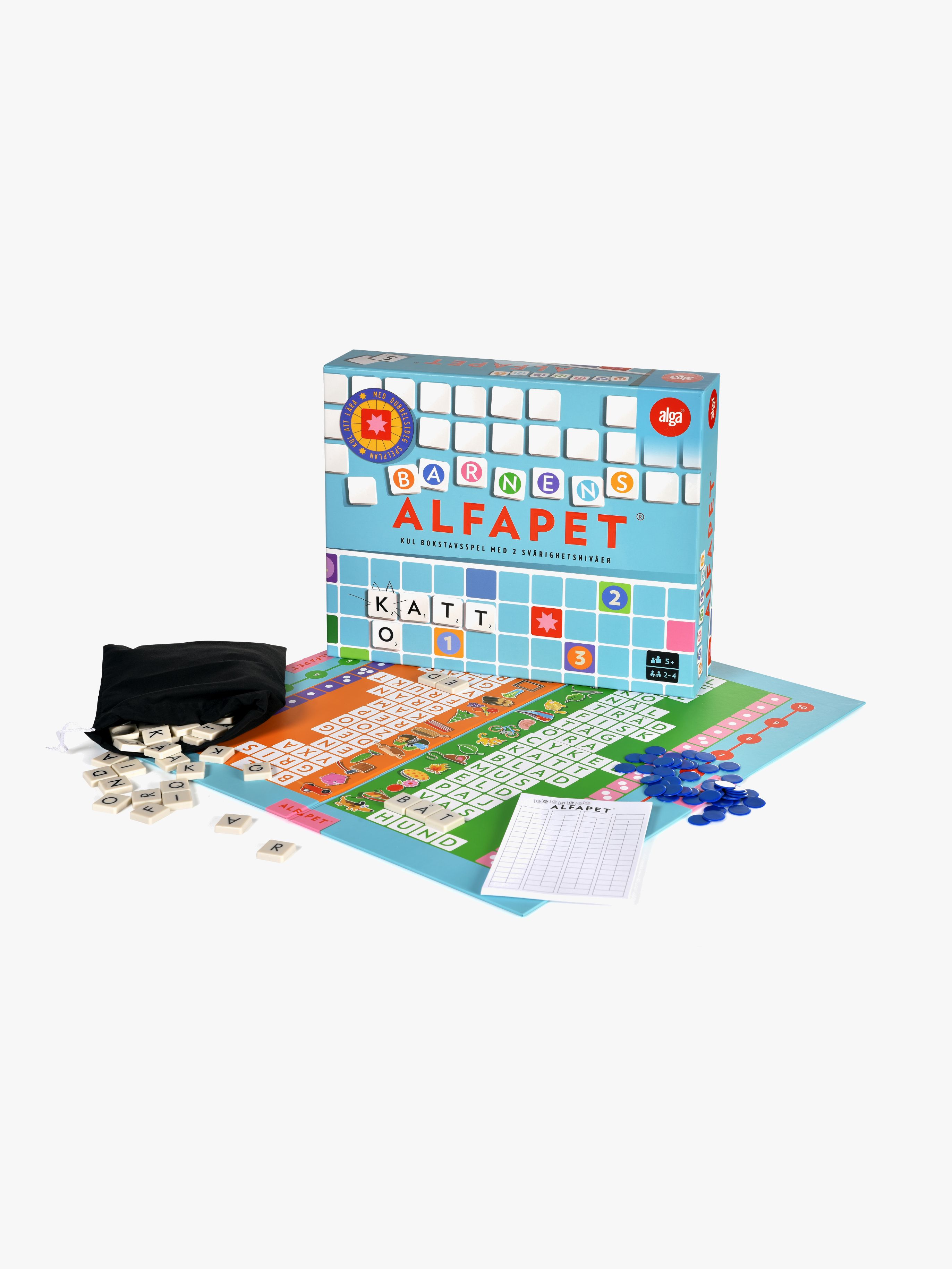 Barnens Alfapet innehåller två roliga spel – ett bokstavsspel och ett korsordsspel. Spelen finns på var sin sida av samma bräde. På den enkla varianten behöver du inte kunna stava eller läsa. Ett kul och lärande spel att växa och utvecklas med. - 2-4 spelare Rekommenderad ålder: Från 6 år.