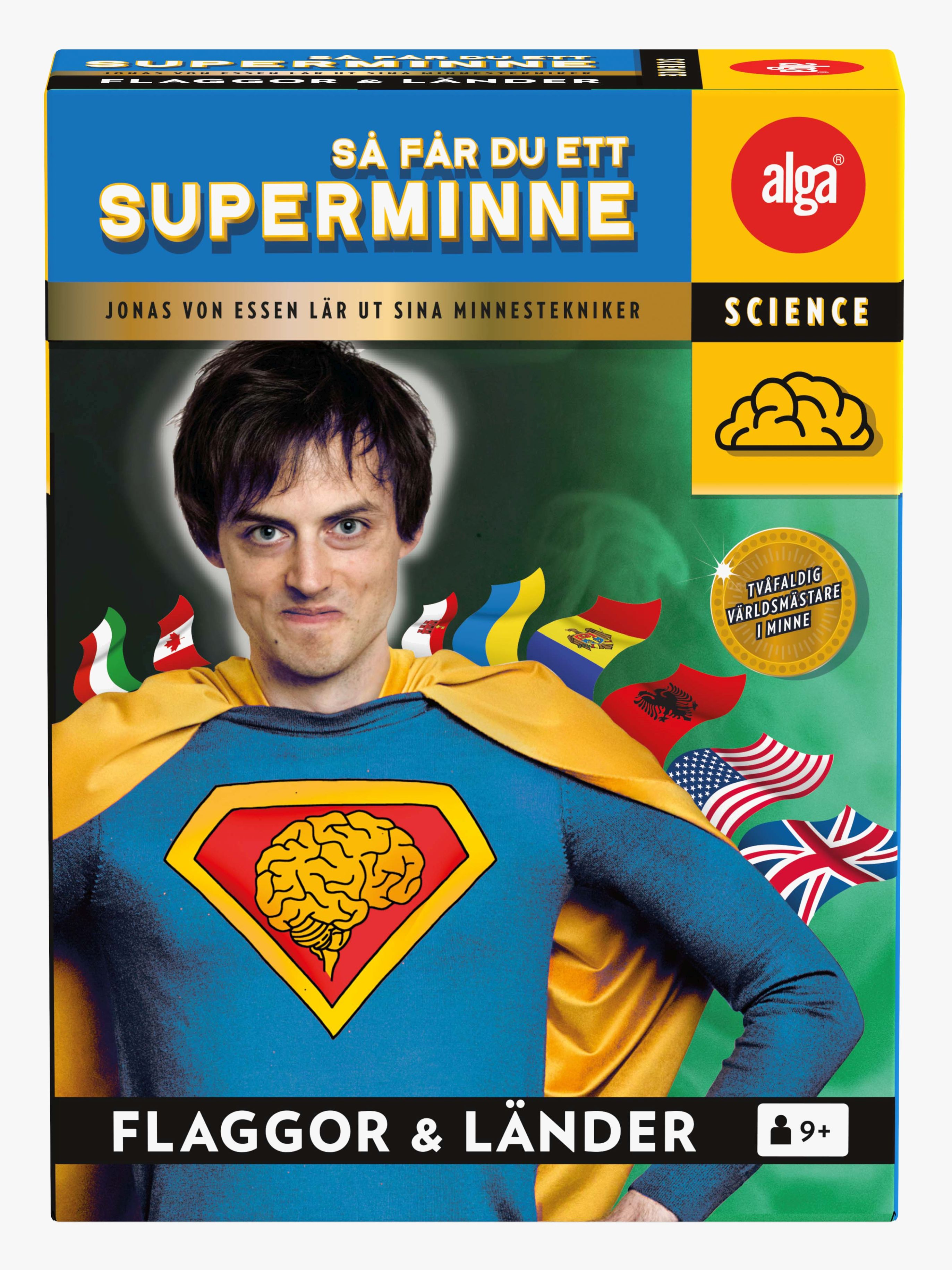 Spel från Alga med geografikunskaper. Bli ett minnesgeni! Lär dig grunderna till ett fenomenalt minne och bli supersmart på köpet! Är det tråkigt med läxor? Lär dig dem snabbt med Jonas teknik. I denna låda lär du dig Europas geografi, länder, huvudstäder och flaggor med lim-metoden. Perfekt för roligt lärande. -CE-märkt. -Rekommenderad ålder: Från 9 år.