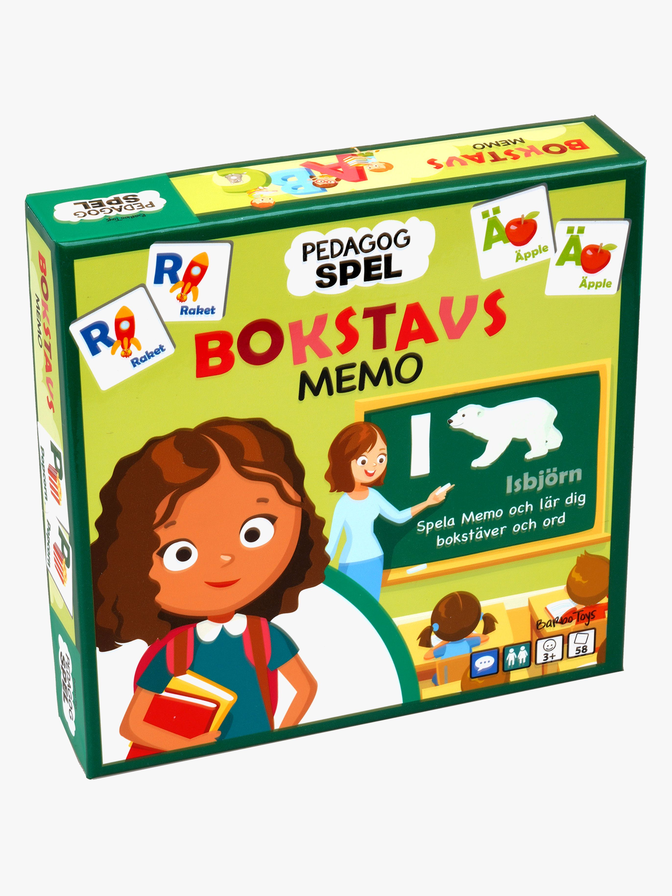 Bokstavsmemo från BarboToys med 36 brickor med roliga bilder. Perfekt för roligt lärande. - Bokstav, ord och motiv som matchar ordet. - Tränar koncentration och minne. - Antal delar: 58. - CE-märkt. - Rekommenderad ålder: Från 3 år.