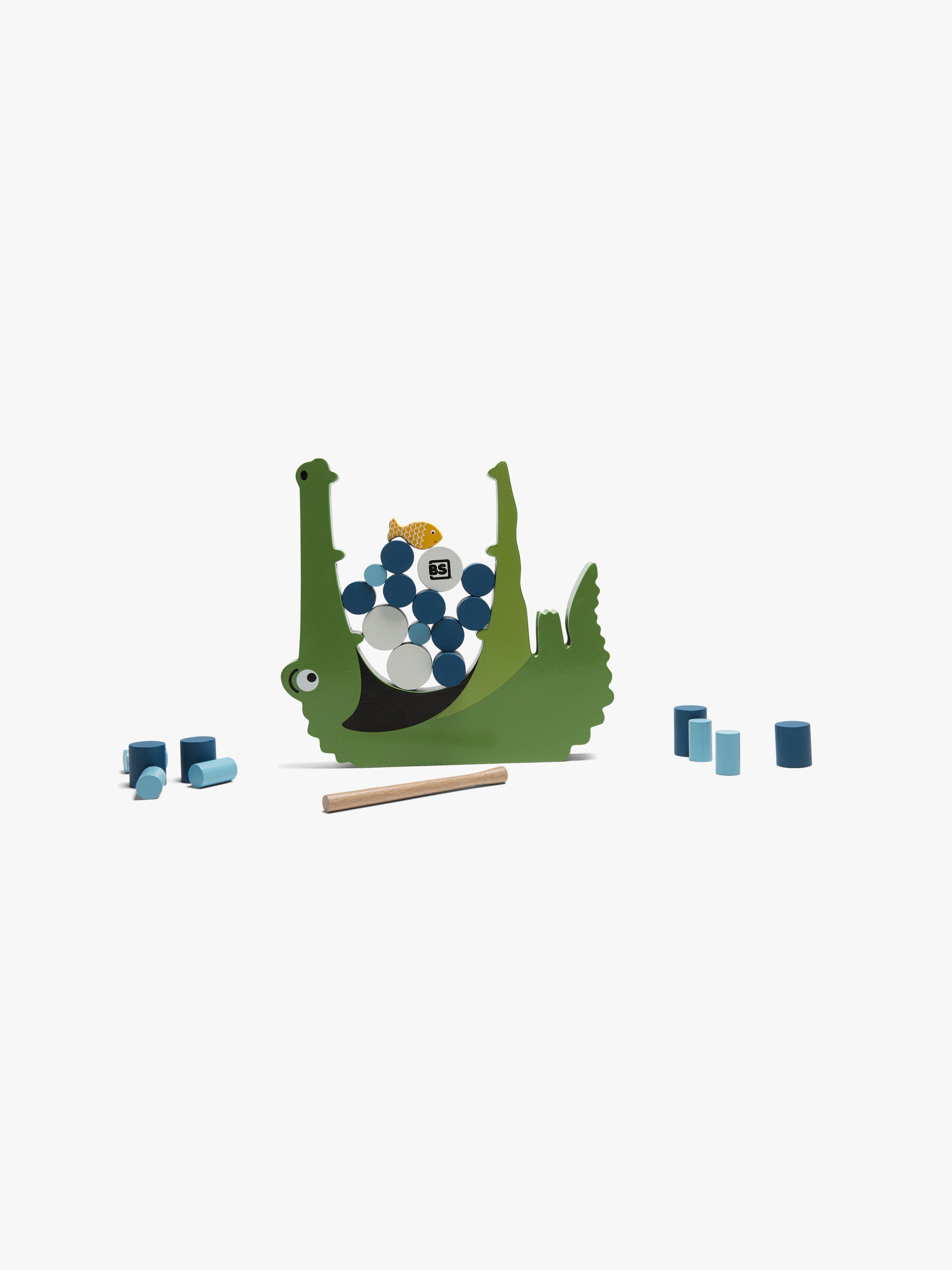 Roligt, utmanande Crocodile barnspel från BS Toys i trä. Hjälp den hungriga krokodilen att äta sin fisk. En hungrig krokodil är en olycklig krokodil. Perfekt underhållning för hela familjen. – CE-märkt – Rekommenderad ålder: Från 4 år