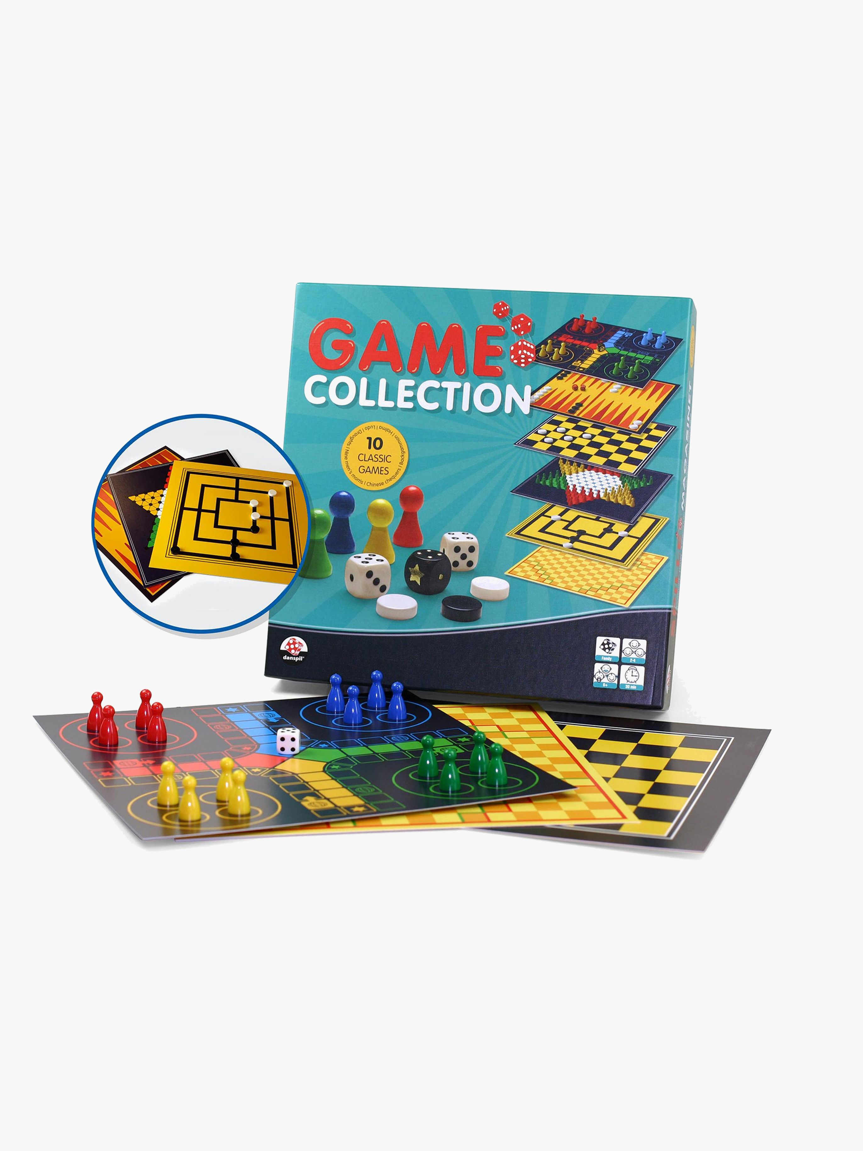 Klassiska sällskapsspel från Danspil för hela familjen. Setet innehåller Fia med knuff, Damspel, Kvarnspel, Kinaschack, Backgammon och Halma. Perfekta för en rolig spelkväll. – CE-märkt. – Rekommenderad ålder: Från 6 år.
