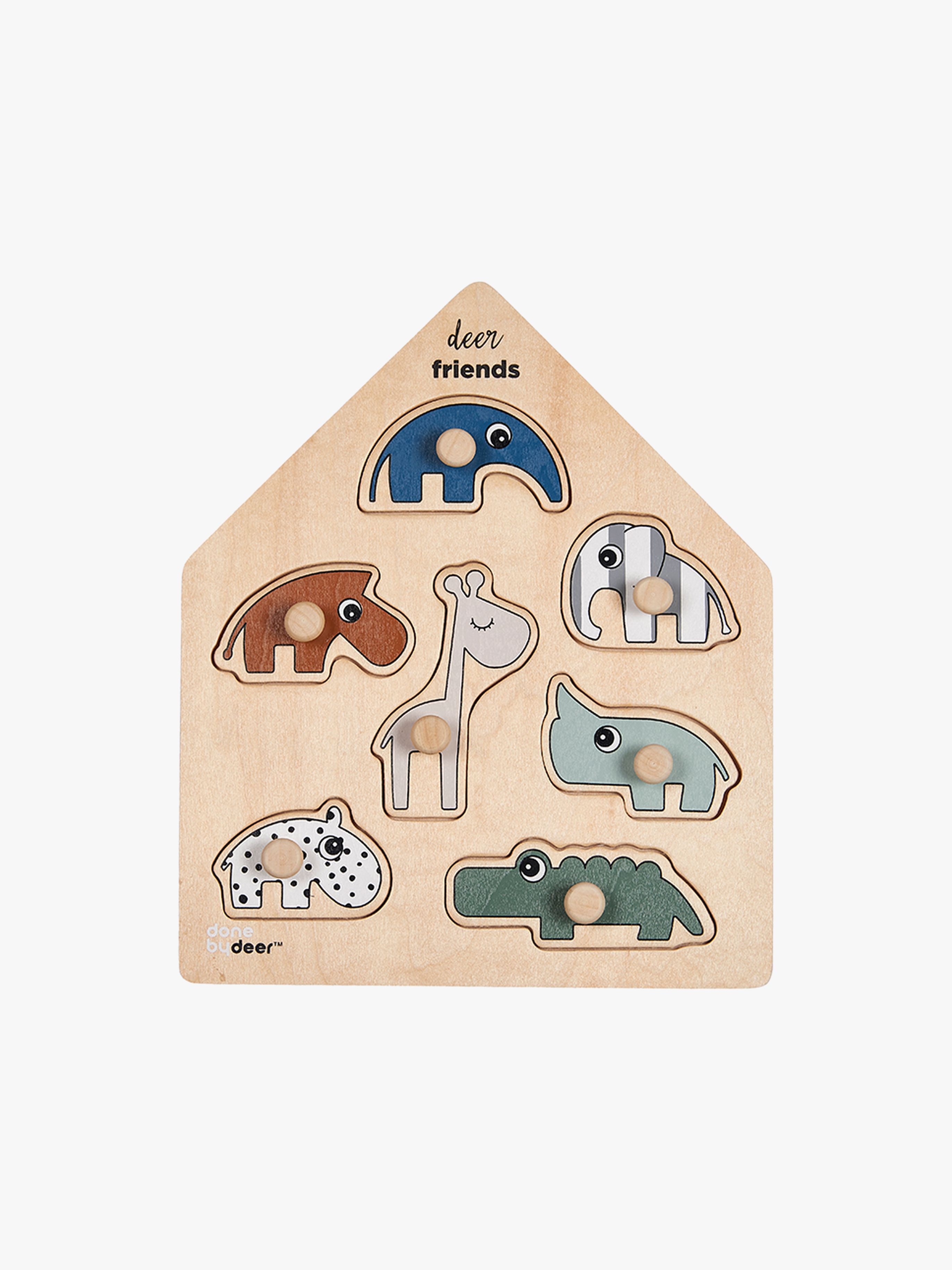 Knoppussel från Done By Deer med sju pusselbitar som stödjer utvecklingen av den lillas fina motoriska färdigheter. Det hjälper även till att utveckla logiskt tänkande och problemlösning. Små fingrar kan ta tag i pusselbitarna och hjälpa hjortvännerna att hitta tillbaka på plats. Rekommenderad ålder: Från 12 månader.