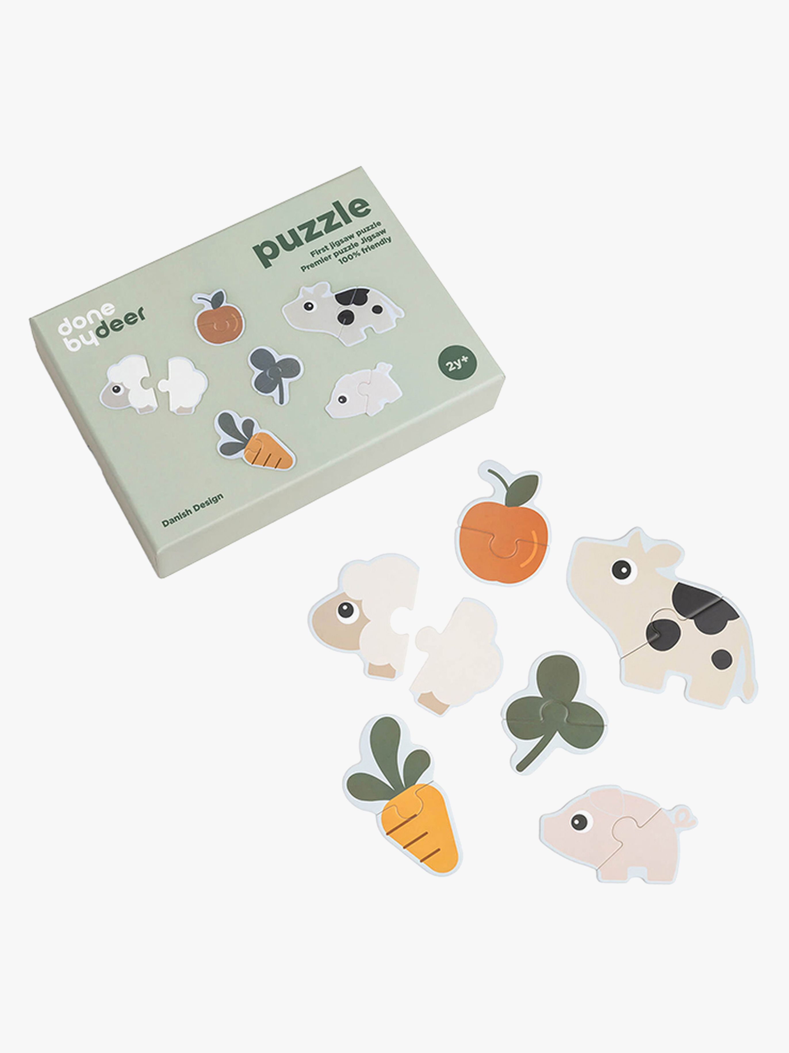 Färgglatt pussel från Done By Deer med ett bondgårdstema. Perfekt för pussel-nybörjaren. - Antal delar: 12. - Olika former och färger. - Perfekt för att utveckla finmotoriken. - Stärker logiskt tänkande och problemlösning. - Torka med fuktig trasa. - Rekommenderad ålder: Från 2 år. - Kartong.