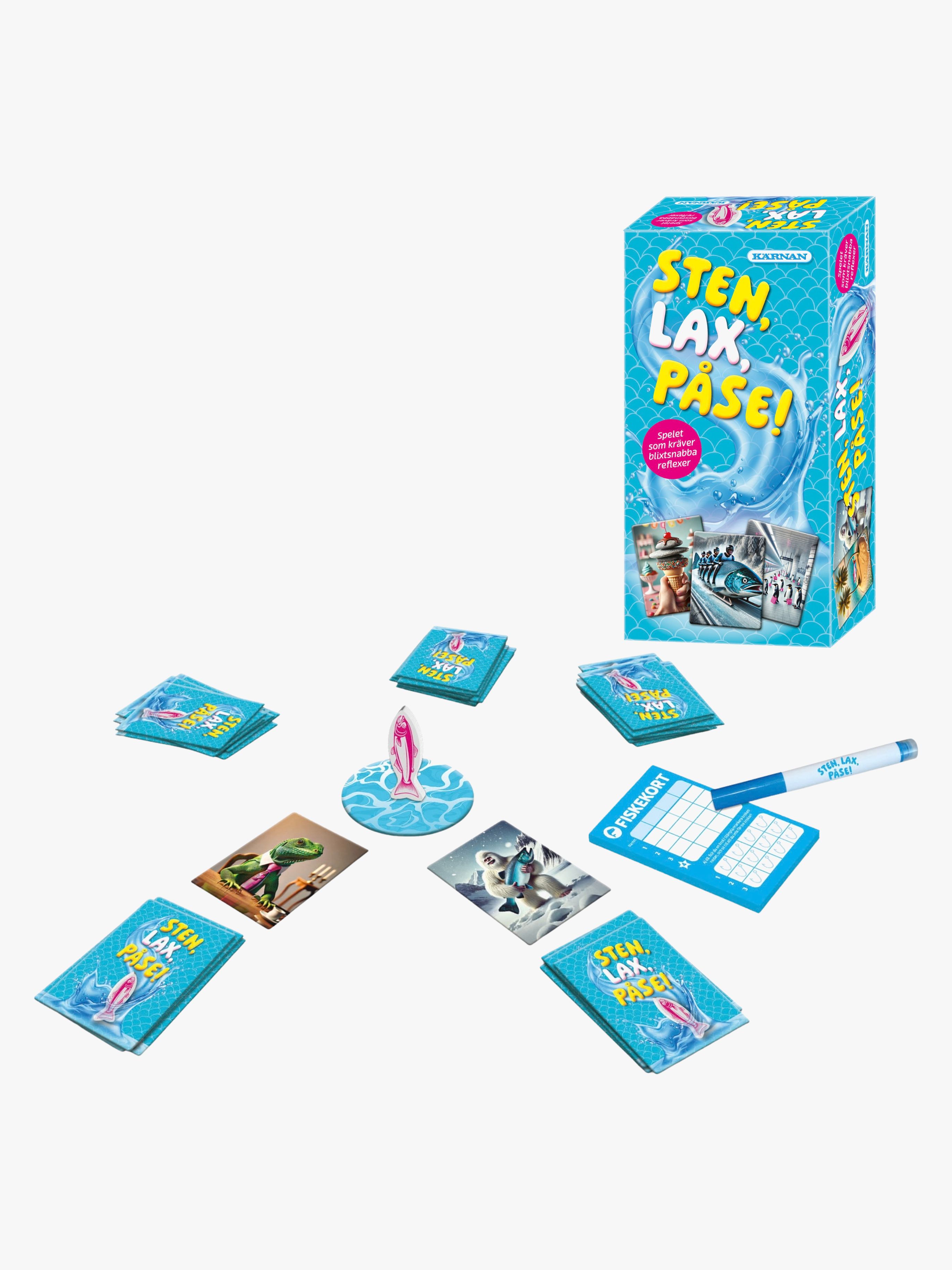 Roligt sällskapsspel från Egmont Kärnan för hela familjen. Sten, lax, påse är ett partyspel för alla som älskar snabba ryck. Först att ta laxen i mitten till rätt kort och med rätt hand, belånas med en laxstämpel. - Från 2-4 spelare. - Rekommenderad ålder: Från 8 år.