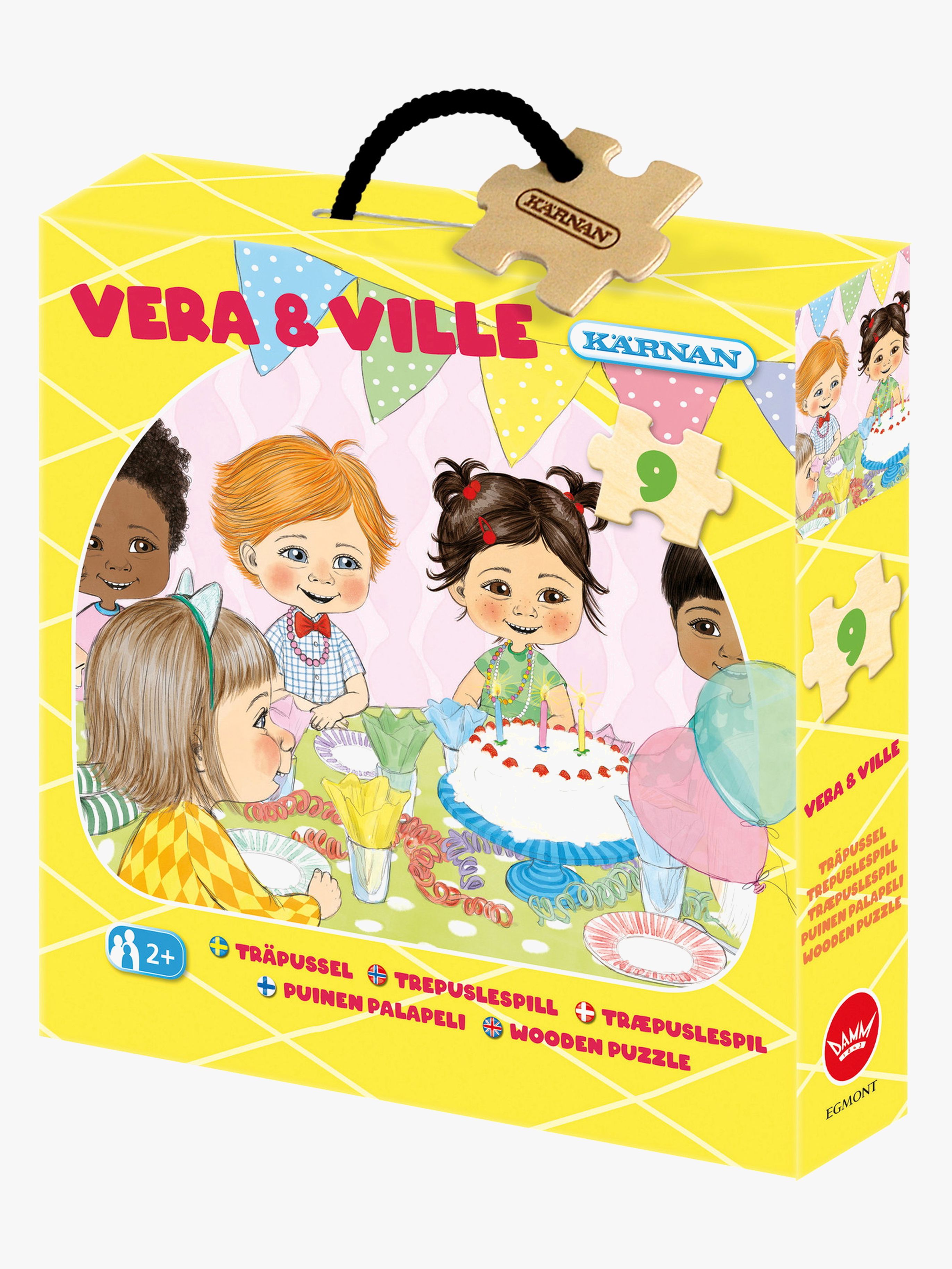 Träpussel från Egmont Kärnan med ett gulligt motiv. Följ med Vera och Ville på kalas med deras vänner! - 9 Bitar. - Rekommenderad ålder: Från 2 år.