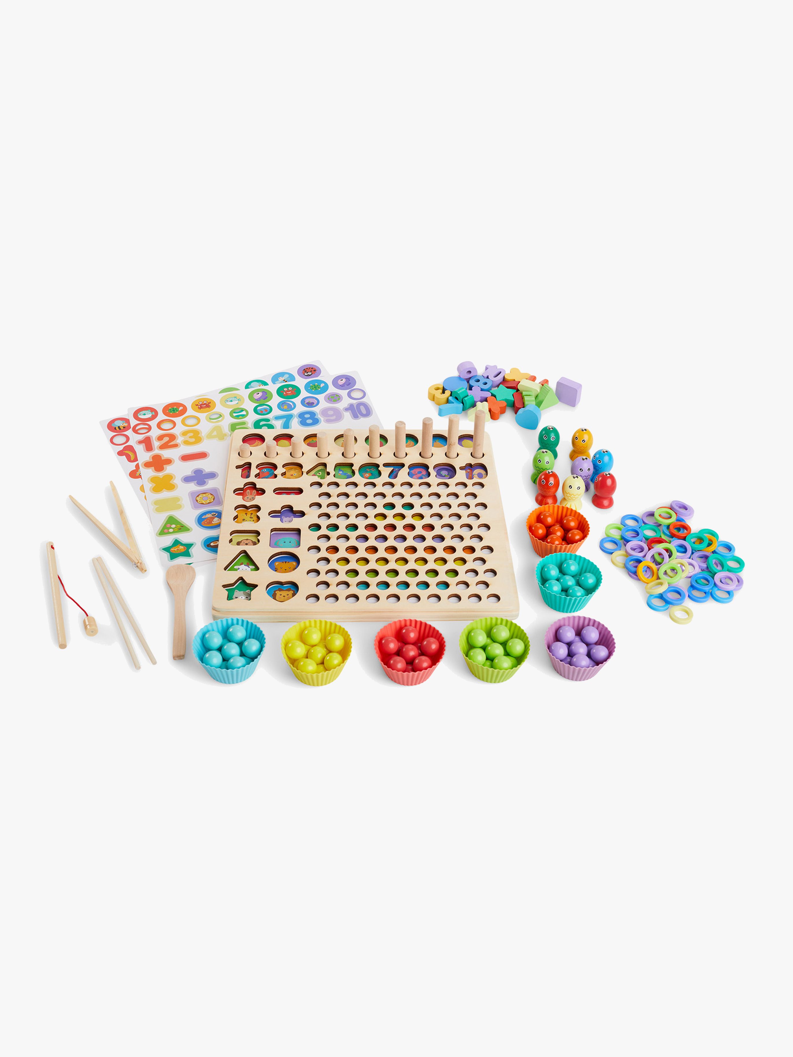 Montessorilek från Fippla med ett bräde med flera, lärorika alternativ. Den har siffror, former, ringar och kulor i olika färger. Perfekt för att träna reflexer, logiskt tänkande och matematisk förmåga på ett roligt sätt. – CE-märkt. – Rekommenderad ålder: Från 3 år. – Trä.