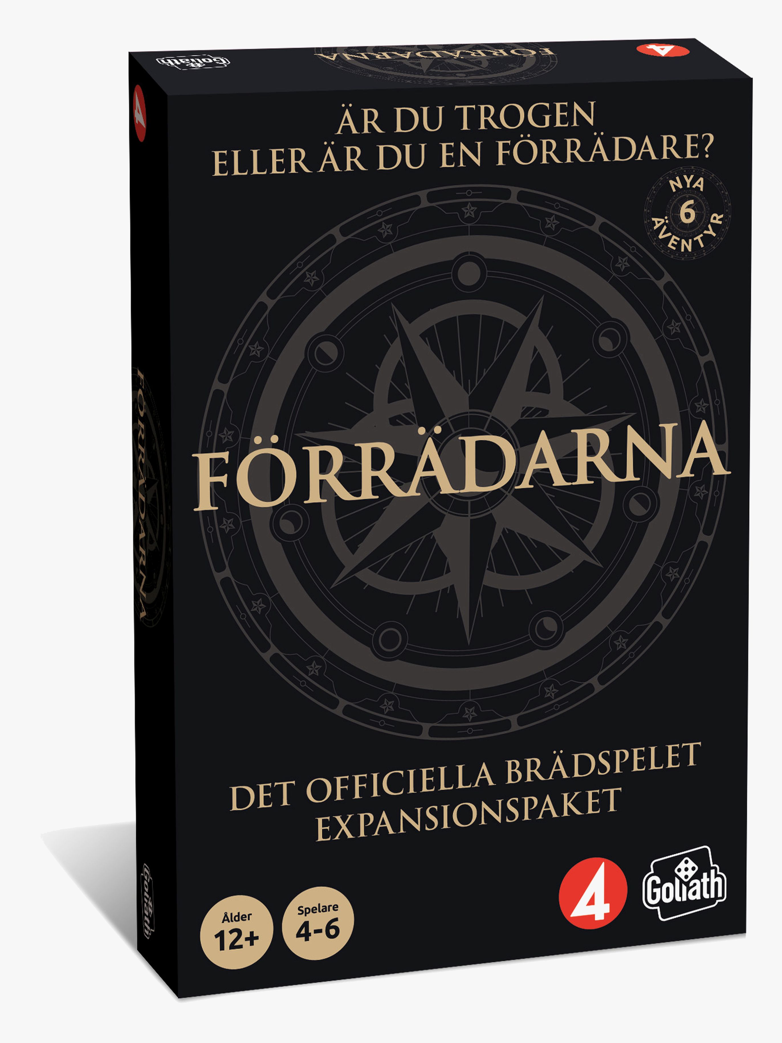 Åldersrekommendationen för Goliath Förrädarna Expansionsset är från 12 år enligt Jollyrooms produktbeskrivning, så som den indexerats av Barnpussel.se.