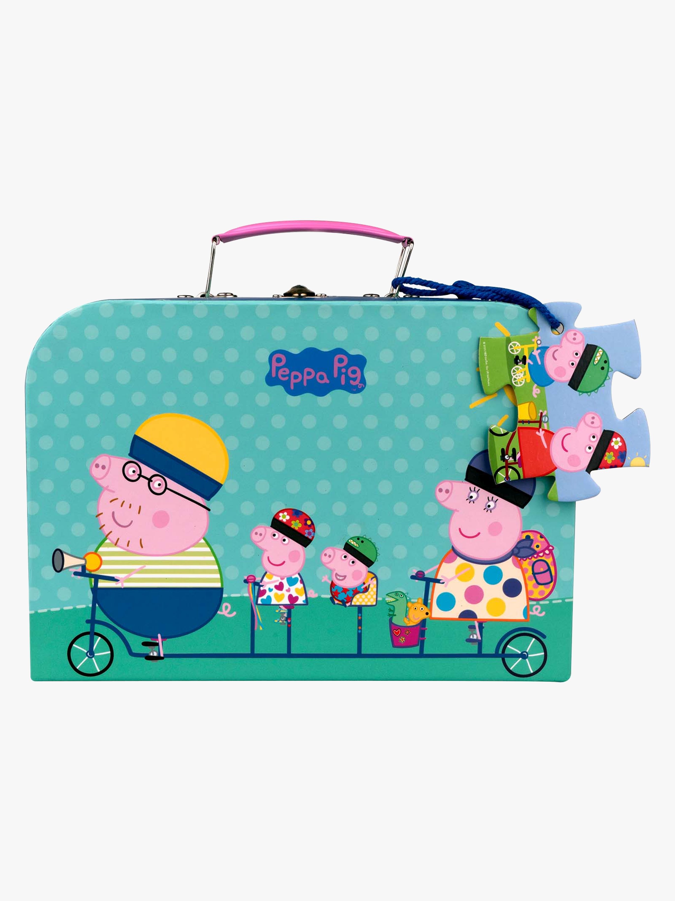 Resväska från Peppa Pig med ett färgglatt pussel inuti. Perfekt för att träna ditt barns hand-öga-koordination och finmotorik. - Innehåller: 1 resväska, 1 pussel. - 25 Bitar. - Praktiskt handtag. - Metallspänne. - Smart förvaring. - Perfekt att ta med på resan. - Lekfull design. - CE-märkt. - Rekommenderad ålder: Från 3 år. - Kartong, metall, papper.