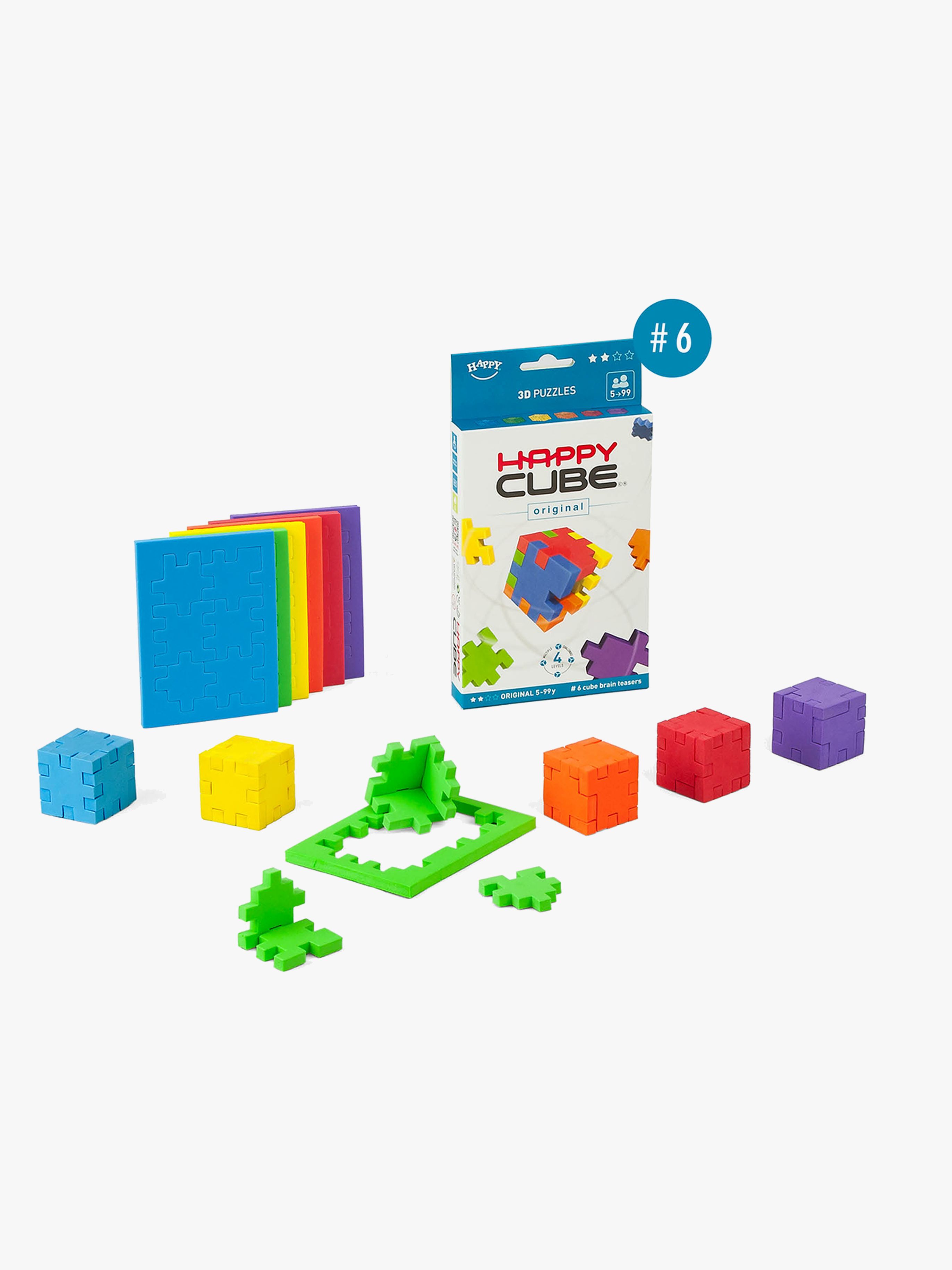 Happy Cube Original från Happy Cube är ett roligt 3D-pussel i mjukt skum. Försök bygga ihop de olika kuberna av pusselbitarna – det är svårare än det ser ut! Med detta roliga pussel får ditt barn öva på problemlösning. Varje set innehåller sex olika pussel i olika svårighetsgrad. Svårighetsgrad: Medium Rekommenderad ålder: Från 5 år.
