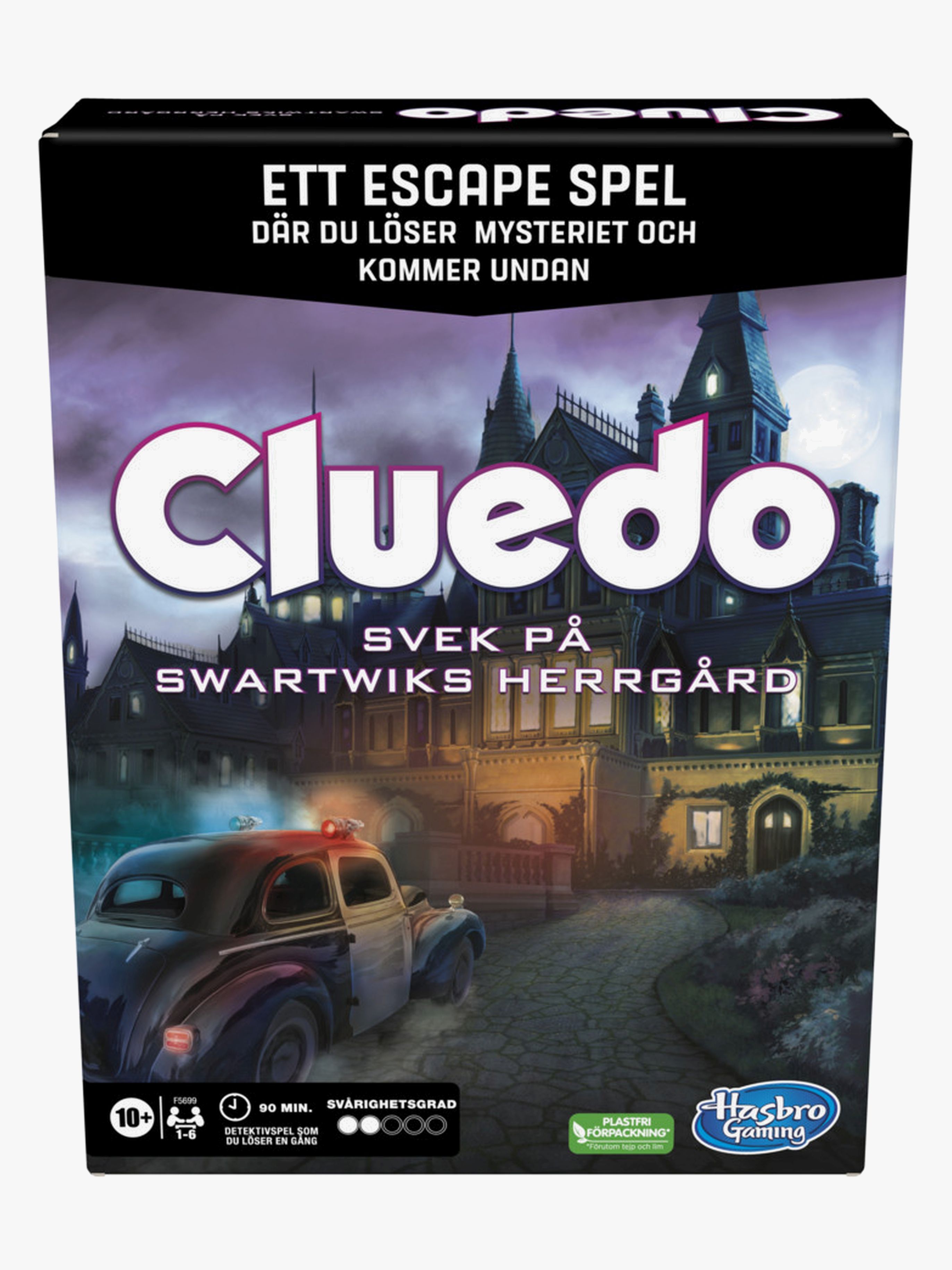 Spel från Hasbro. Klassikern från 1949 som har fångat fans sedan start med sina mysterium- kommer nu med en ny upplaga! Denna gången handlar det escape room. Under en middag som går allt annat än rätt behöver nu gruppen söka sig ut från herrgården, oskadda och med frågor om vem, var och hur mordet på Boddy Black gått till. – Rekommenderad ålder: Från 10 år.
