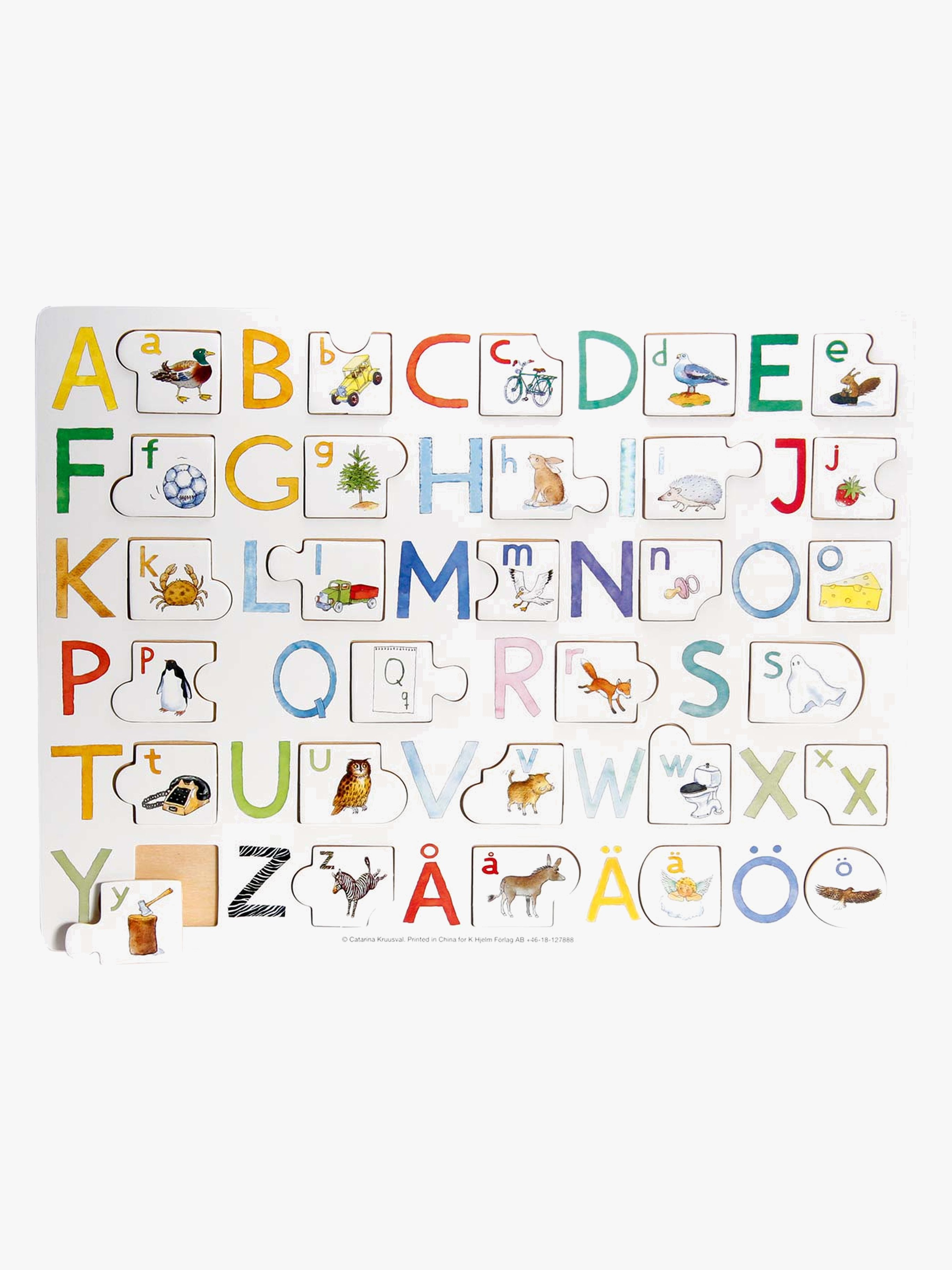 Ellens ABC är ett roligt pussel från Hjelm Förlag. Med detta fina pussel kan ditt barn pussla och lära sig alfabetet samtidigt. Pusslet innehåller 29 bitar i trä och har fina bilder av Catarina Kruusval. - 29 bitar. Rekommenderad ålder: Från 2 år.
