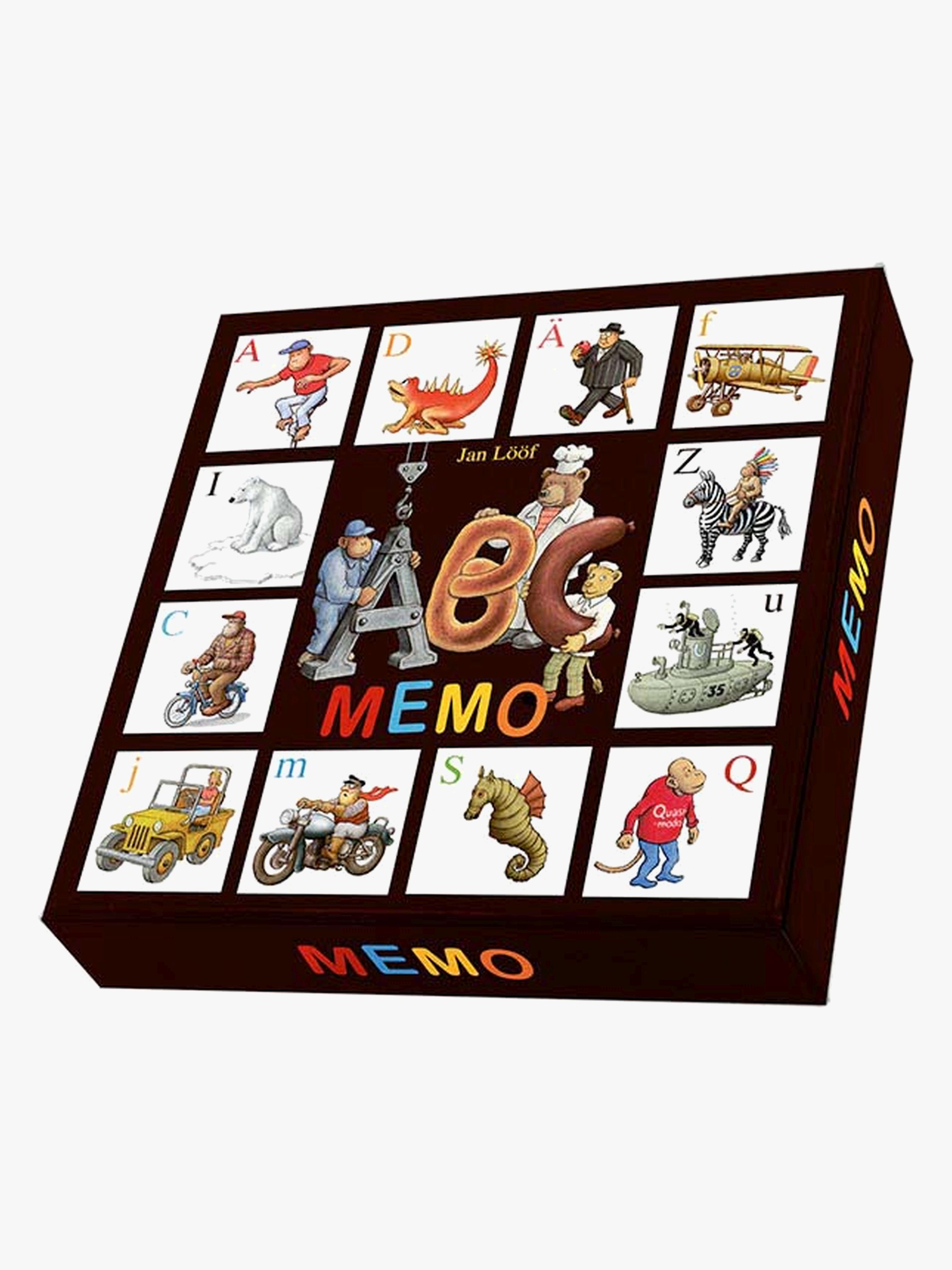 Ett roligt ABC-memo från Hjelm Förlag. Para ihop de matchande brickorna med varandra i detta roliga memospel. Spelet innehåller 58 memobrickor med bilder av Jan Lööfs finurliga figurer och mackapärer. Rekommenderad ålder: Från 2 år.
