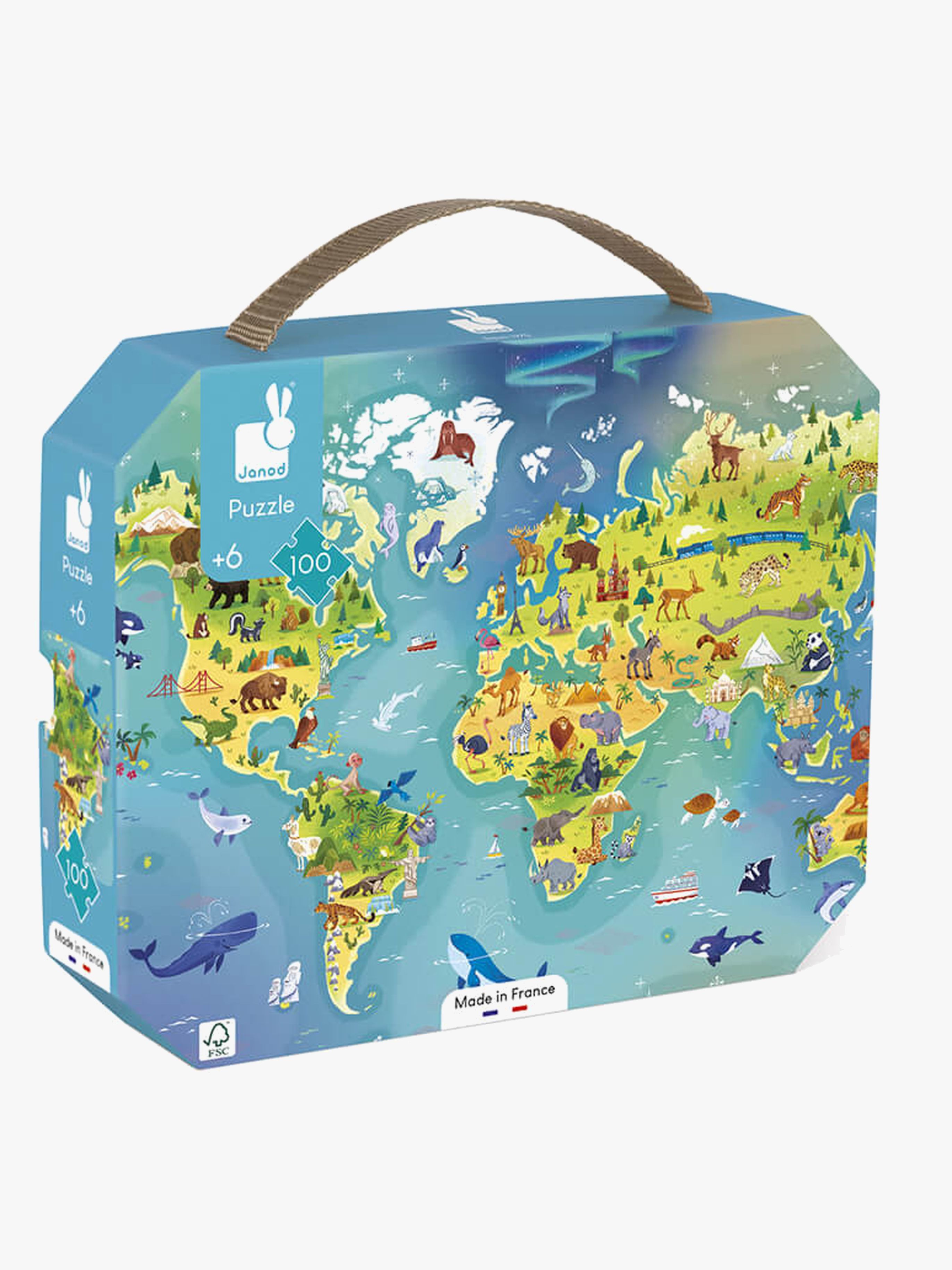 Janod Pussel Världskarta 100 Bitar från Janod är ett 100-bitars pussel för barn från 6 år. Priset hos Jollyroom är 299 kr. Enligt Barnpussel.se:s prisuppdatering är produkten i lager hos Jollyroom.