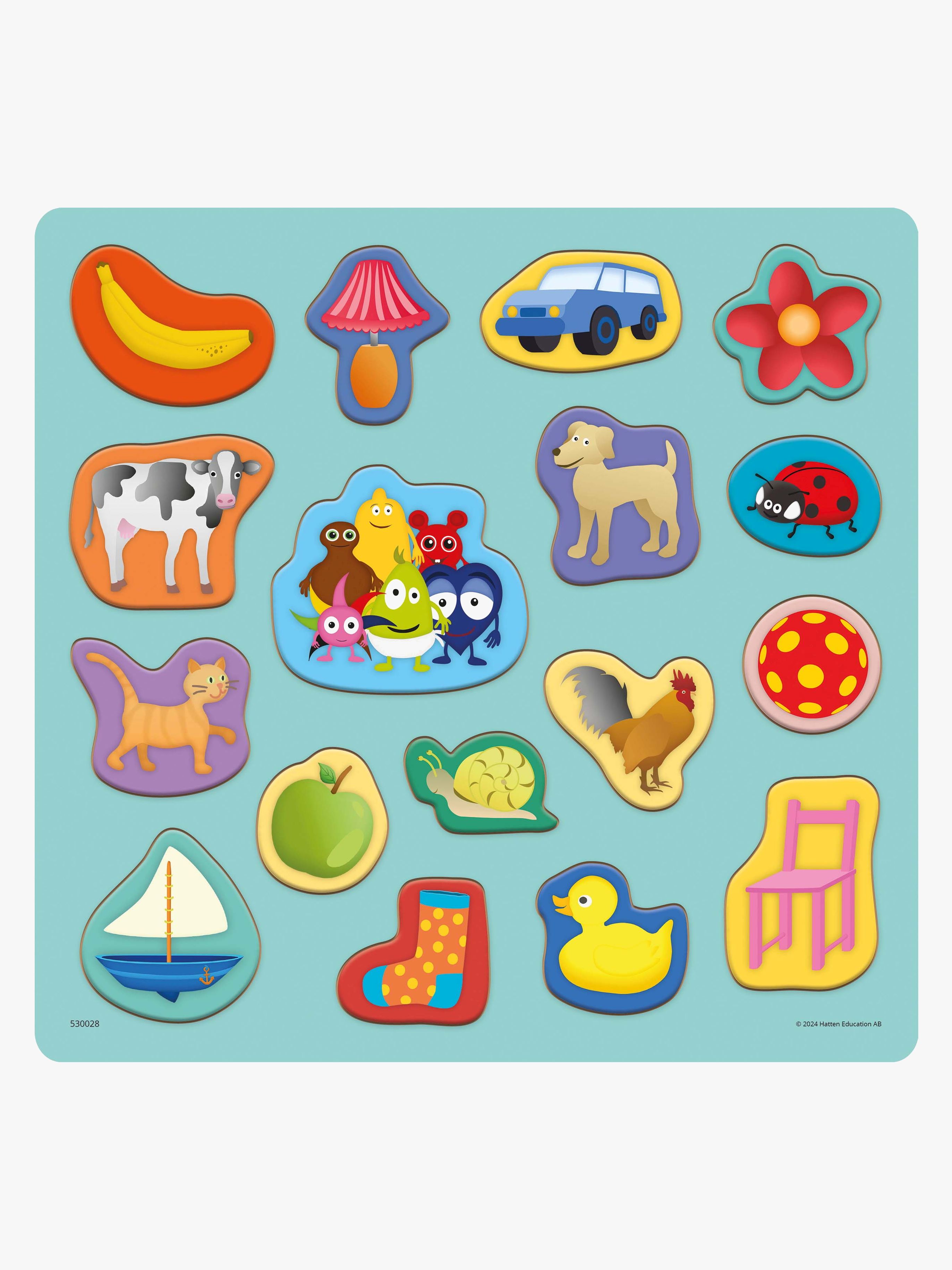 Pussel från Kärnan med ett lekfullt motiv av Babblarna. Perfekt för att träna ditt barns hand-öga-koordination och finmotorik. - 17 Bitar. - Bilder, text och tecken. - Upphöjda bitar. - Stadig ram i trä. - Perfekt för att utveckla finmotoriken. - CE-märkt. - Rekommenderad ålder: Från 2 år. - Trä.