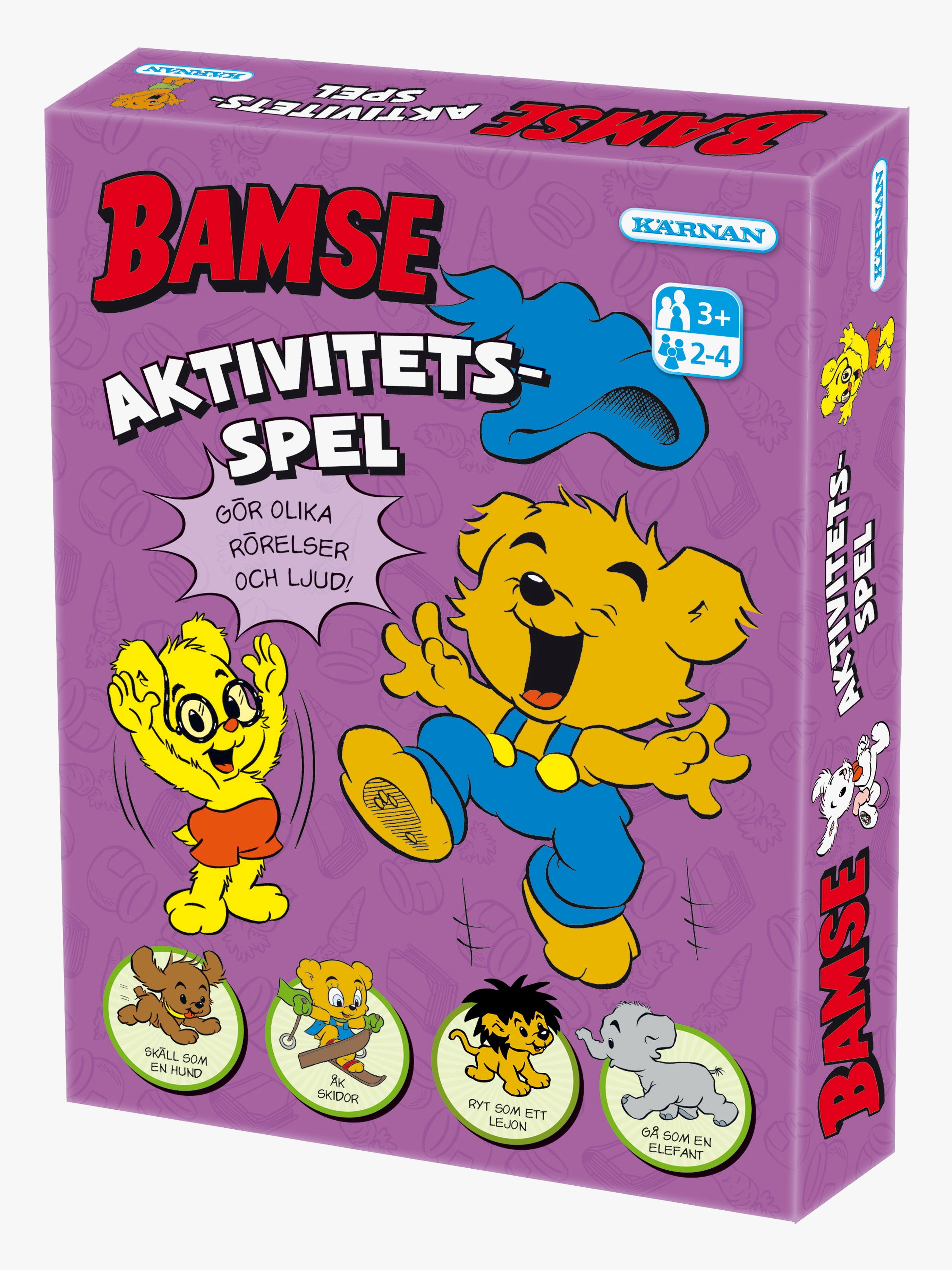Aktivitetsspel från Kärnan med kända karaktärer från Bamses värld. I Bamse Aktivitets-spel vinner du brickor genom att göra olika roliga rörelser och ljud. Det kan vara att gå som en gorilla, smyga som en katt eller låta som en polisbil. Då och då kommer Vargen fram och busar genom att gömma brickor. Ett kul aktivitetsspel för dig som gillar att röra på dig och att ha kul samtidigt! - Perfekt för många roliga spelstunder. - CE-märkt. - Rekommenderad ålder: Från 3 år.