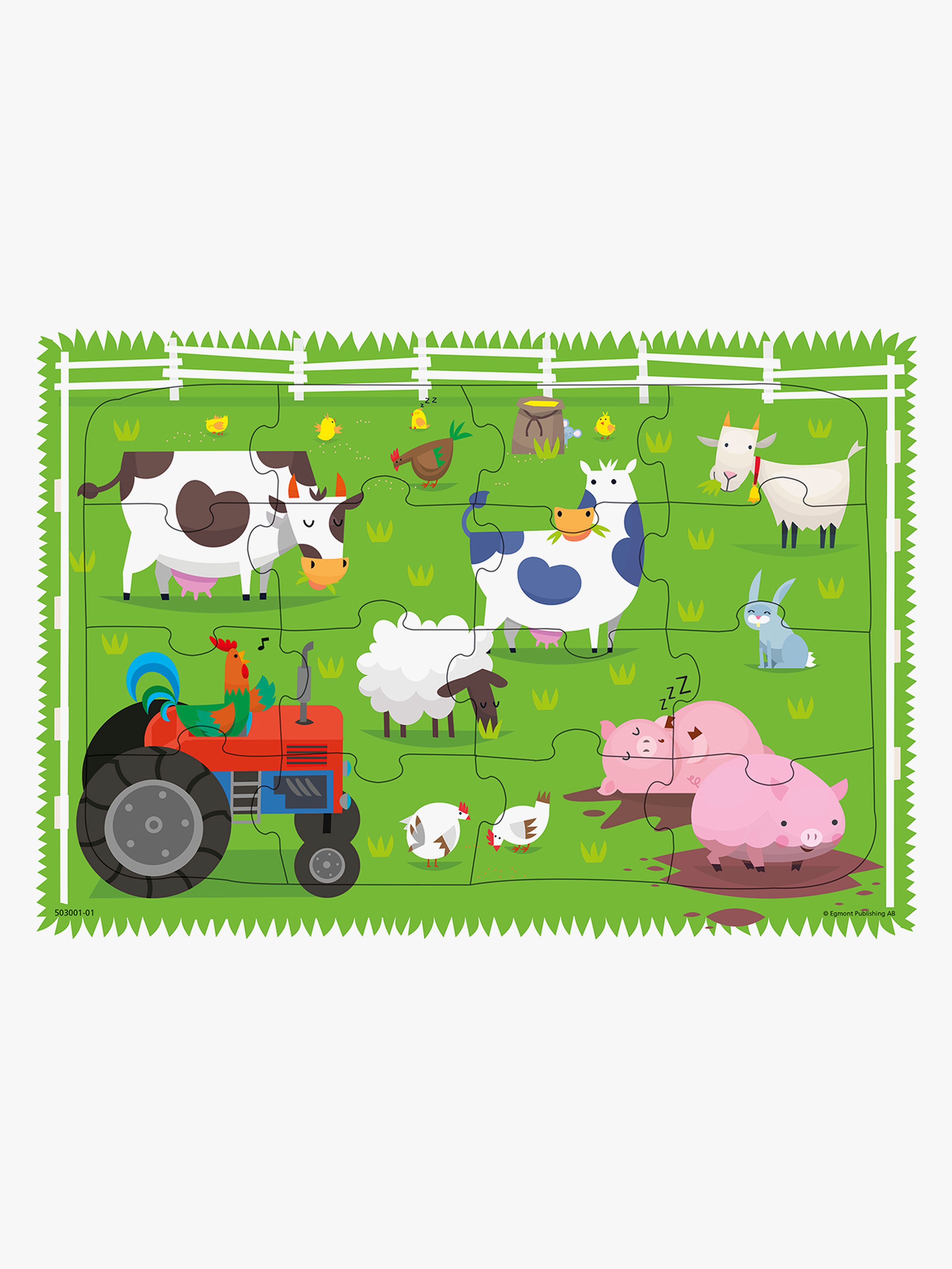 Ett roligt rampussel som passar den minsta. Låt barnet lära sig om djuren på bondgården med stora bitar för enklare placering av pusselbiten. Lägg hästen, kaninen, fåren och kavlarna på rätt plats! Rekommenderad ålder: Från 3 år. Antal bitar: 16 bitar.
