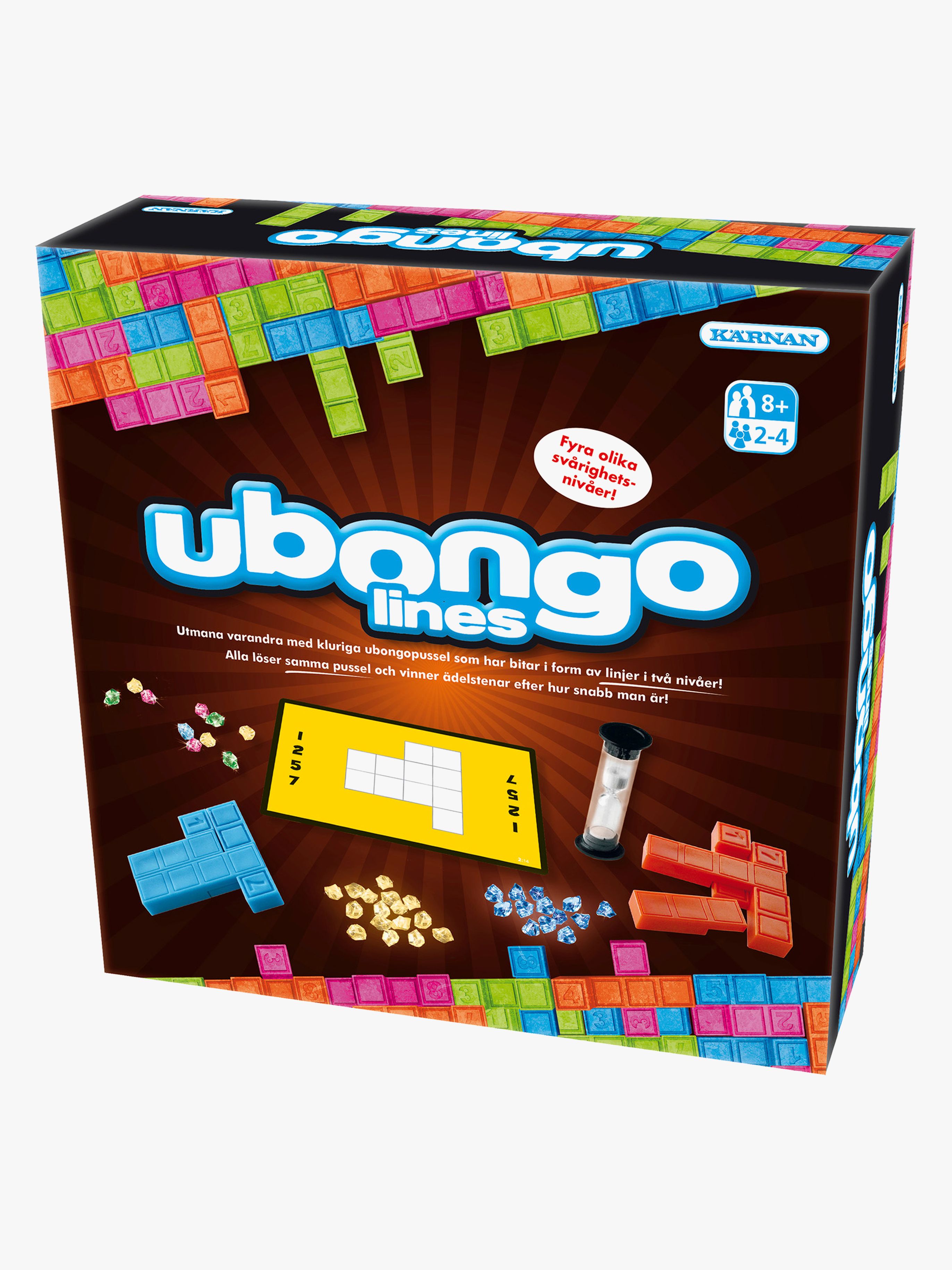 Ubongo Lines spel från Kärnan med en ny, rolig version. Det har fyra olika svårighetsgrader. En klurig uppföljare till Ubongo Classic där du löser pussel med bitar i form av linjer i två nivåer. Perfekt för massor av familjekul. – CE-märkt. – Rekommenderad ålder: Från 8 år.