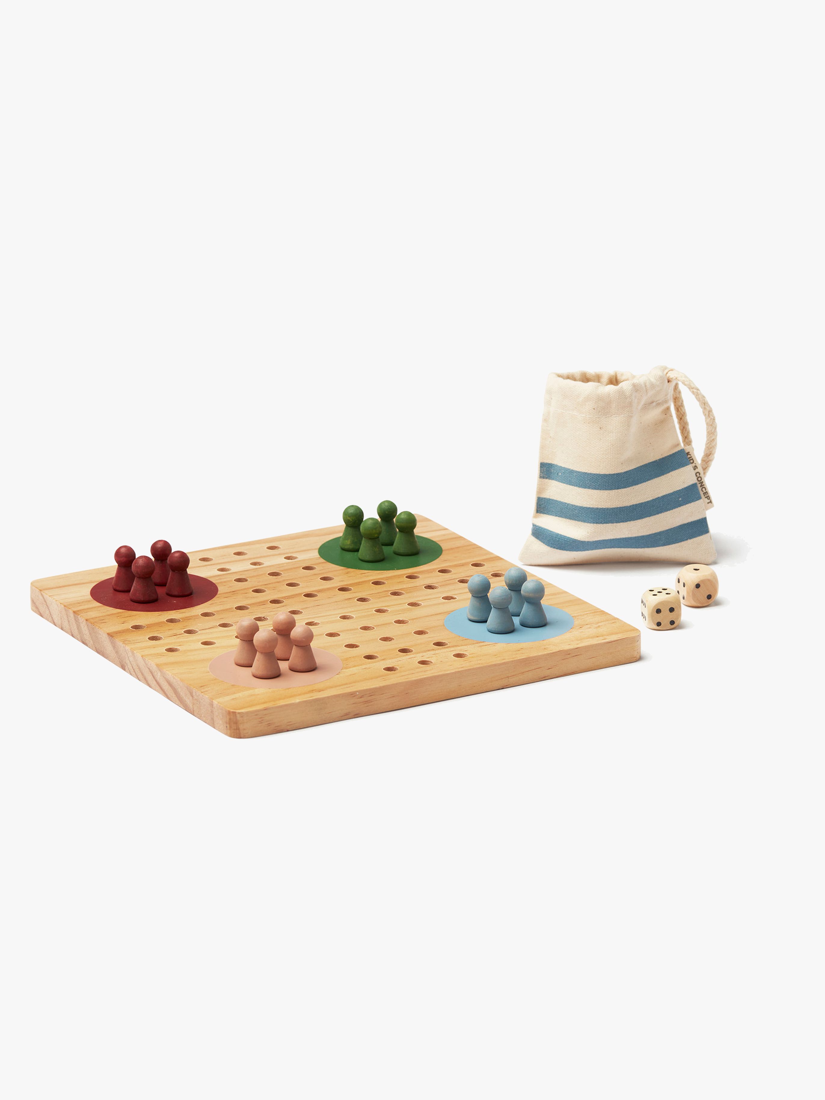 Klassiskt fiaspel från Kids Concept i trä. Det har en förvaringspåse i bomull och två tärningar i trä. Detta spel kommer i färger inspirerade av den välkända, svenska designern Carl Larssons hem. Perfekt för massor av familjekul. – CE-märkt. – Rekommenderad ålder: Från 3 år. – furu, schima, bomull.