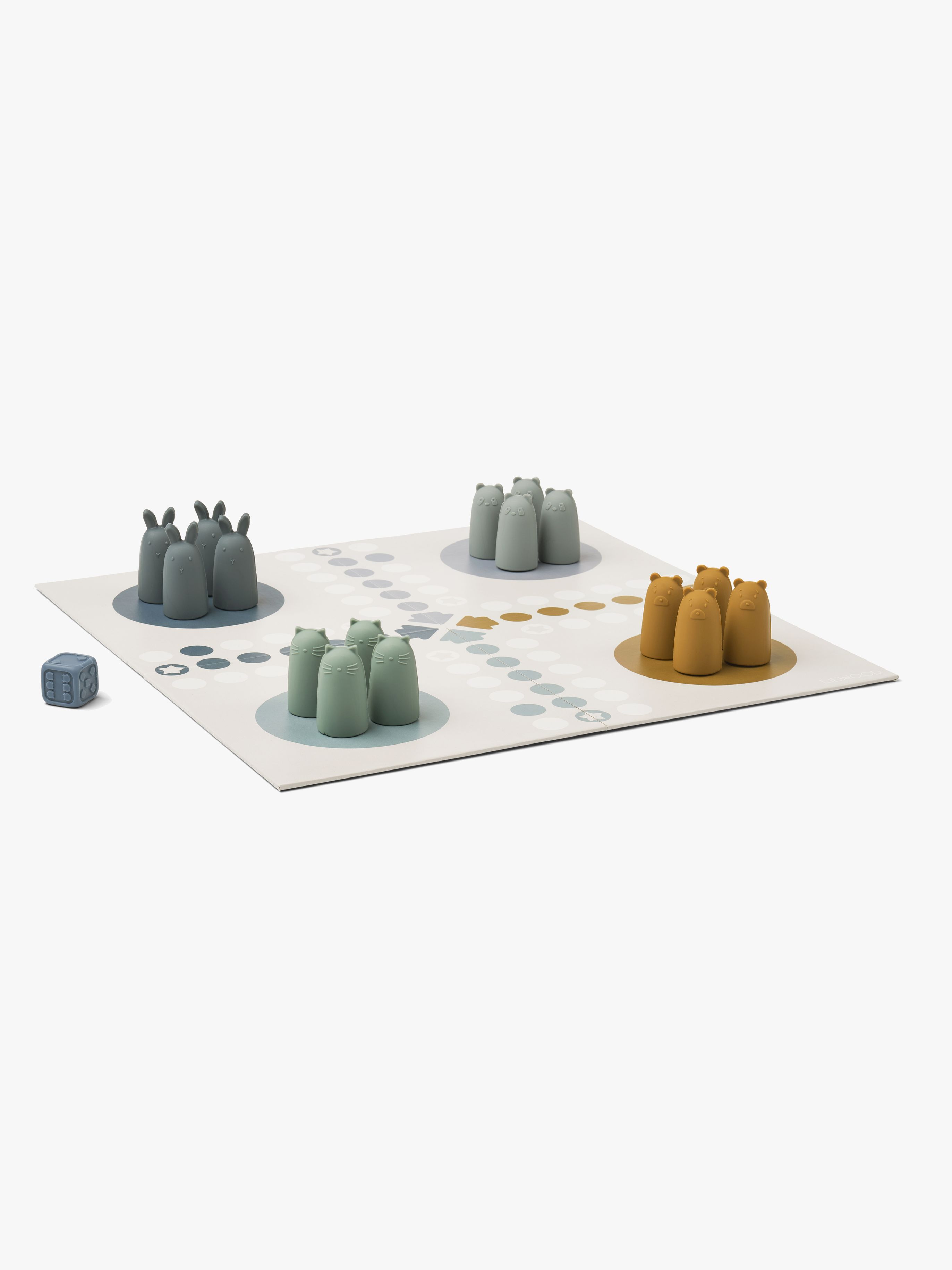 Klassiskt fiaspel från LIEWOOD med en lekfull design i mjuka färger. Det har söta spelpjäser i silikon formade som olika djur och en matchande, blå tärning. Perfekt för många roliga spelstunder. – Enkelt att rengöra. – Spelpjäserna är mjuka och går inte sönder om de tappas. – Spelpjäsernas höjd är ca 4,5 cm. – CE-märkt. – Rekommenderad ålder: Från 3 år. – Silikon, kartong.