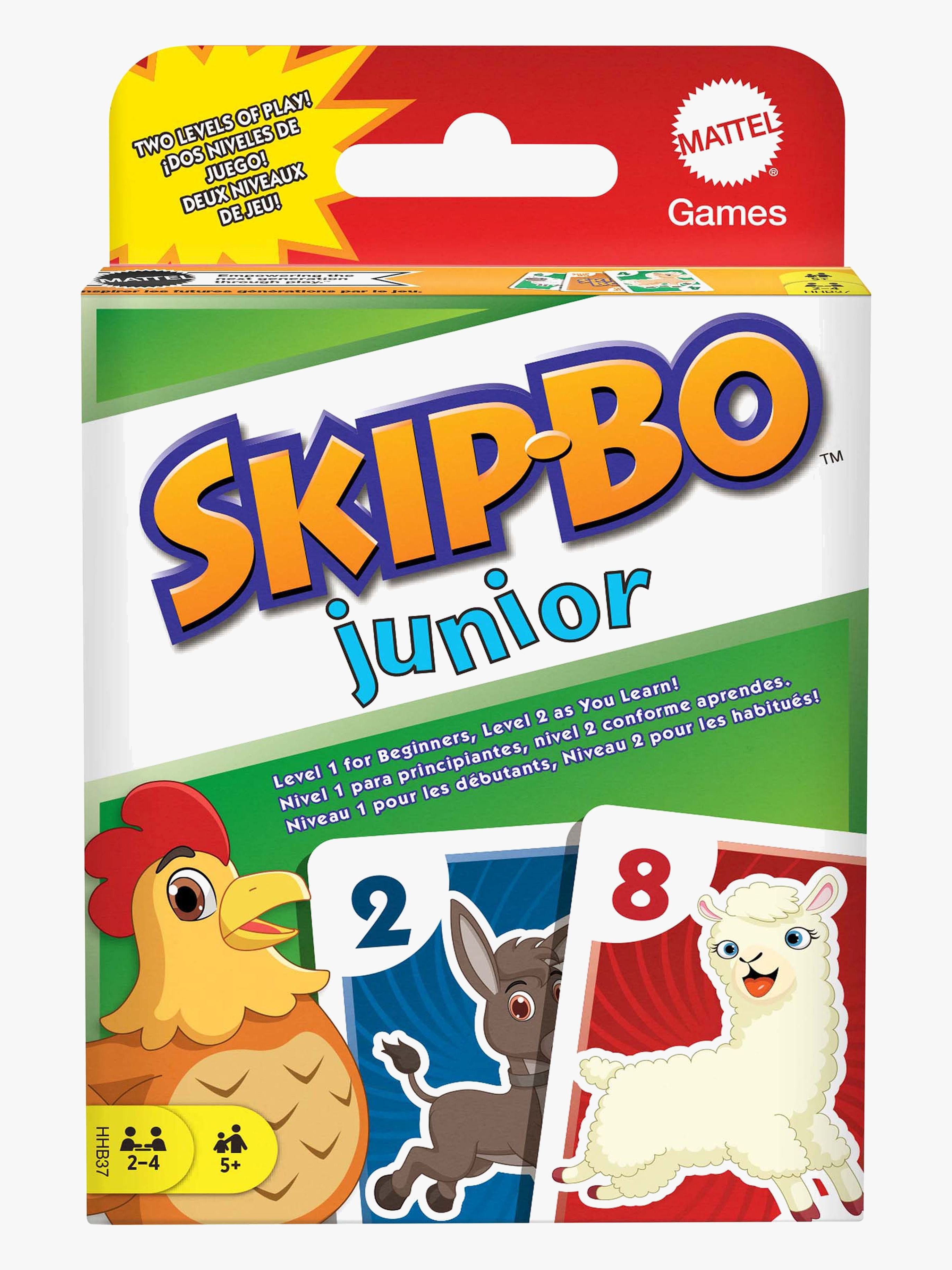 Populärt Skip-Bo Junior sällskapsspel från Mattel med kort med djurmotiv. – Rekommenderad ålder: Från 5 år