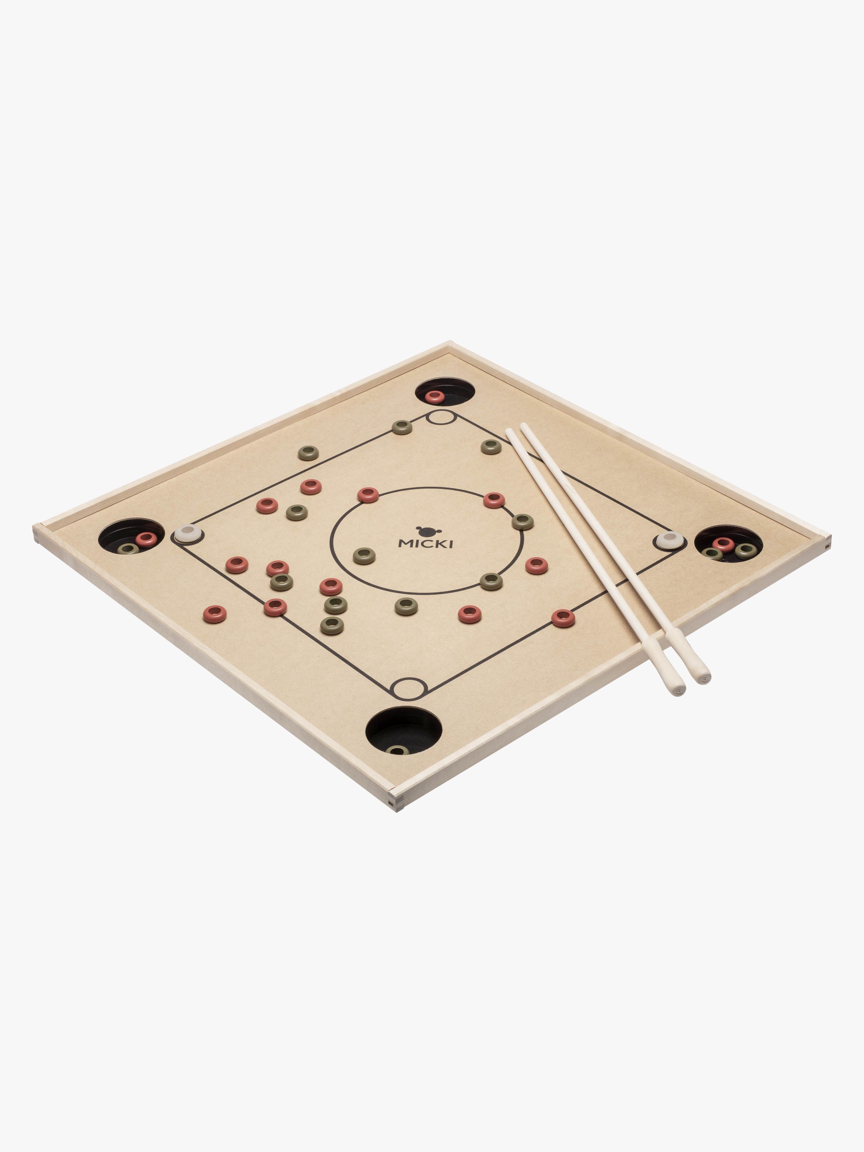 Klassiskt Couronne sällskapsspel från Micki i trä med 30 ringar för hela familjen. Couronne kan spelas av två eller fyra spelare. Spelet går ut på att få ner alla små träbrickor i spelbrädets hörnfack. – CE-märkt. – Rekommenderad ålder: Från 3 år. – Trä.