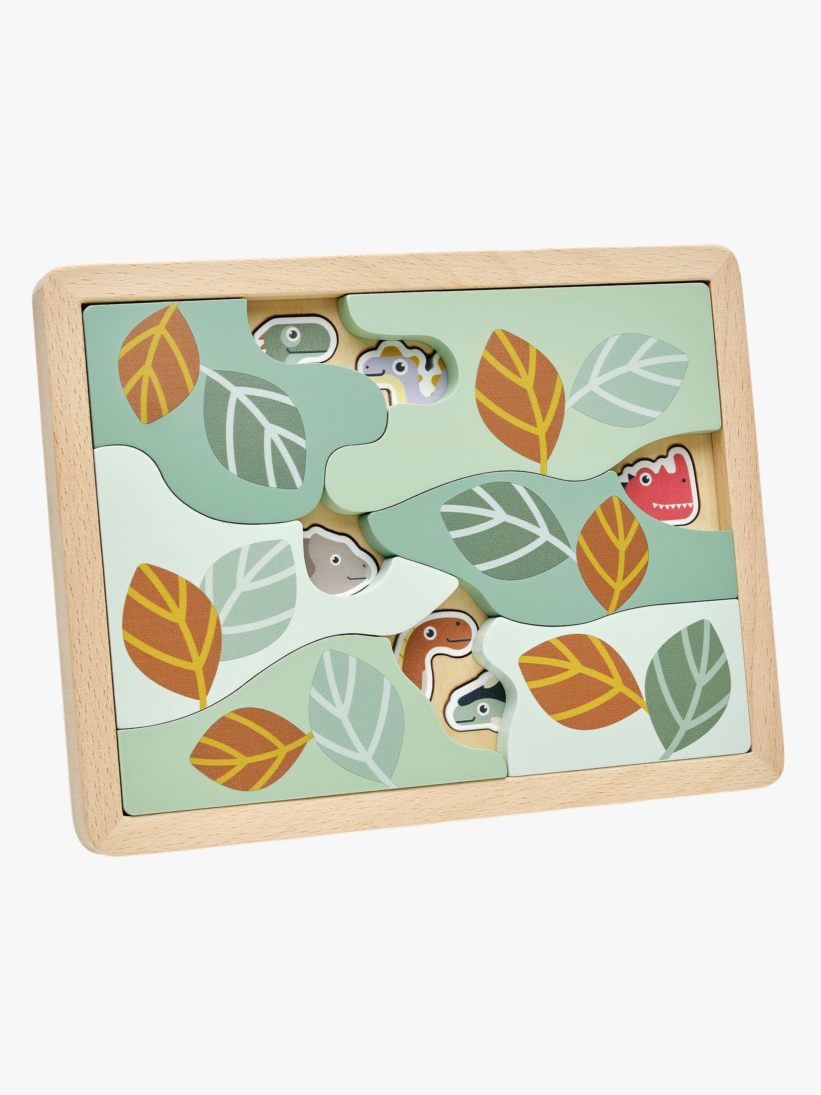 Pussel från Moover Toys med en lekfull design. Perfekt för många timmars skoj. - 6 Bitar. - Hitta alla de gömda dinosaurierna. - Stora pusselbitar. - Stimulerar barnets logik, finmotorik och hand-öga-koordination. - CE-märkt. - Rekommenderad ålder: Från 1,5 år. - Trä.