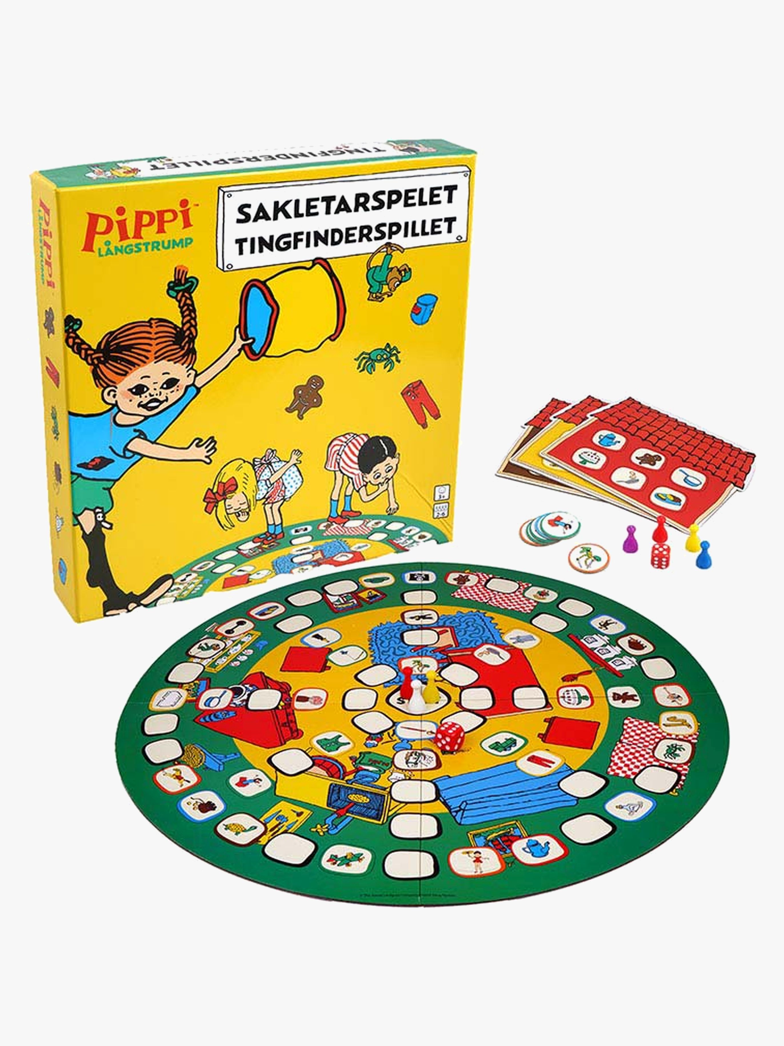 Sakletarspelet från Pippi Långstrump. I det här roliga familjespelet med Pippi Långstrump gäller det att fylla spelbrädan med de saker du behöver samla till ditt lilla Pippi-hus. Samla allt från Pippis kläder, köksartiklar eller kanske några saker från hennes trädgård. Slå tärningen och tänk noga så att du går åt rätt håll där du kan samla saker till ditt hus. Roligt och strategiskt brädspel för hela familjen, där det gäller att få tallriken fylld så snabbt som möjligt. – CE-märkt. – Rekommenderad ålder: Från 3 år.