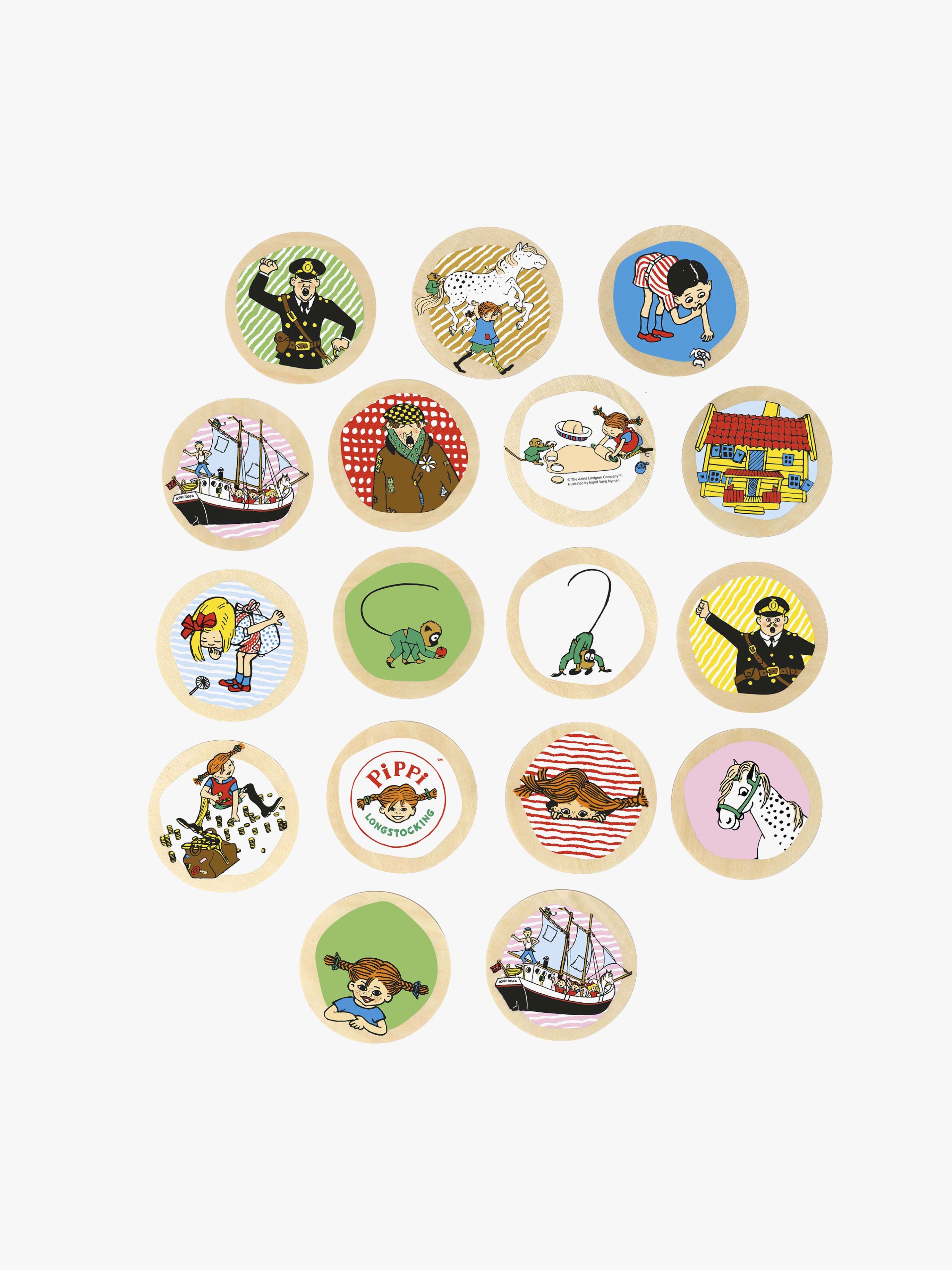 Klassiskt memo från Pippi med fina bilder från Pippi Långstrump. - Klassiska spelregler. - Perfekt för många roliga spelstunder. - CE-märkt. - Rekommenderad ålder: Från 2 år. - Trä.