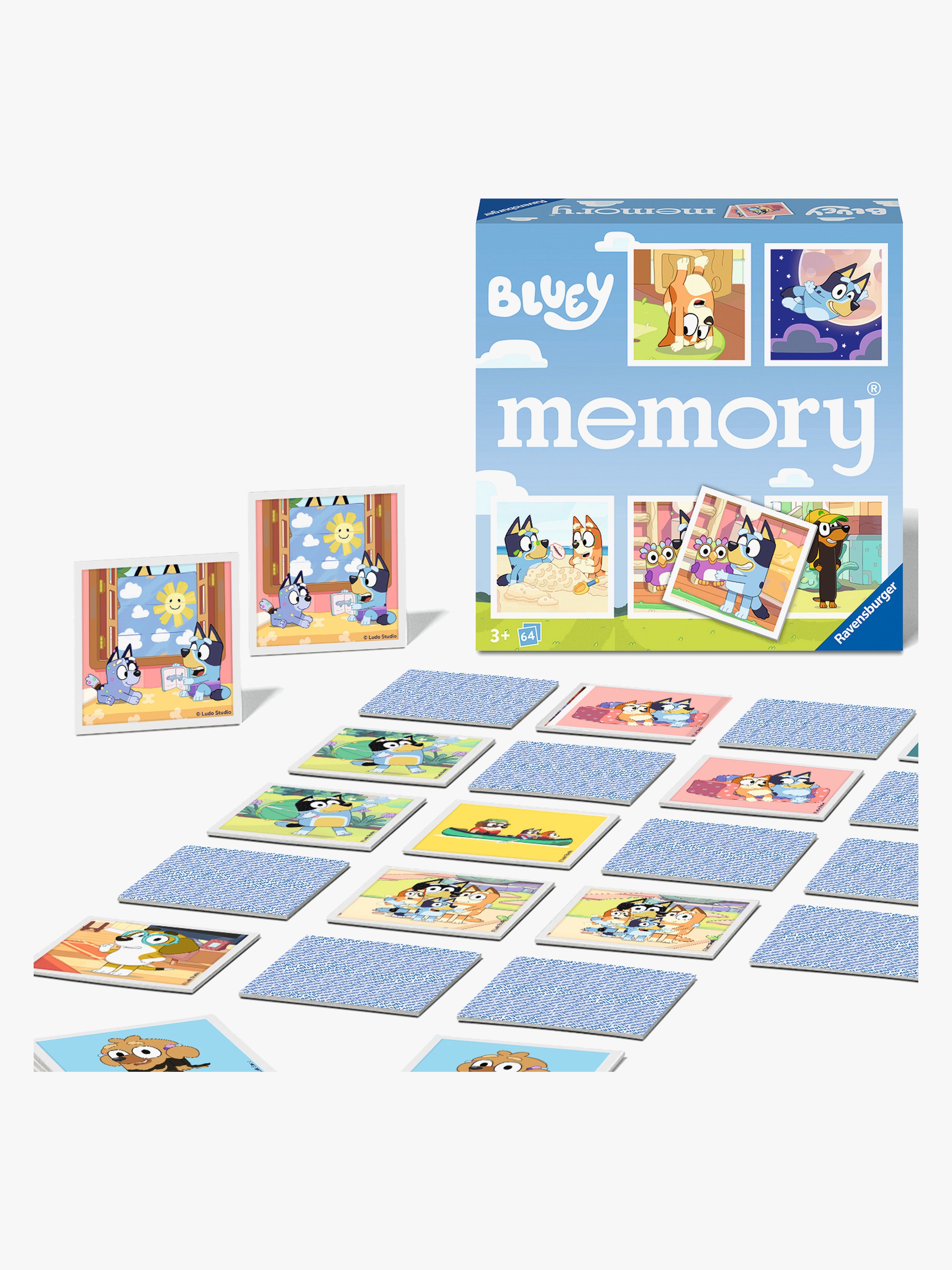 Memory från Ravensburger med lekfulla Bluey-motiv. Perfekt för att träna tålamod, öga-hand-koordination och minne. - 64 kort med Bluey-motiv. - Material av högsta kvalitet. - Perfekt för att träna koncentration och minne. - CE-märkt. - Rekommenderad ålder: Från 3 år. - Kartong.