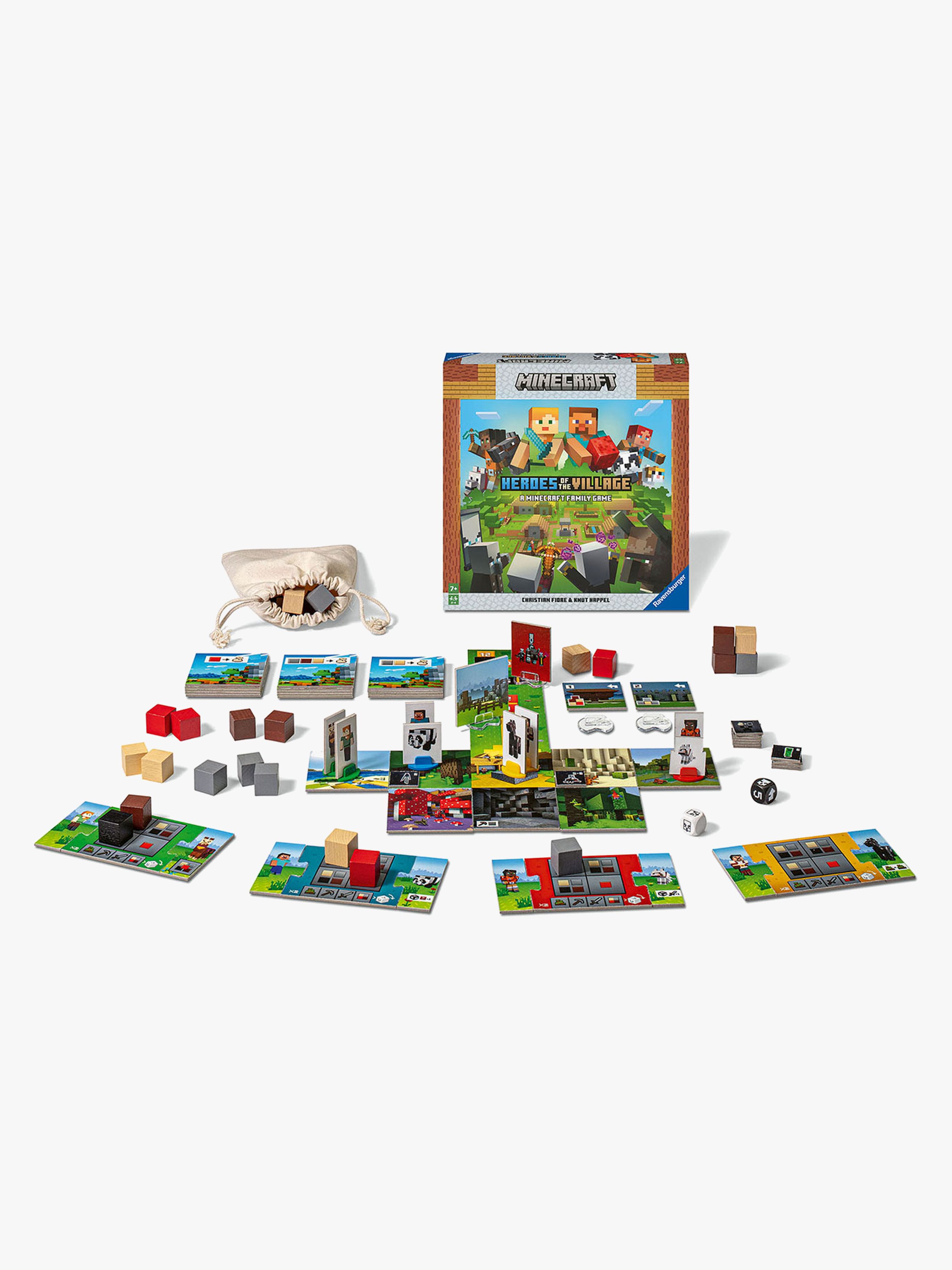 Underhållande Minecraft Heroes of the Village sällskapsspel från Ravensburger baserad på det populära spelet med samma namn. Äventyr och skoj väntar i det här Minecraft-spelet som bygger på samarbete. Kan du skydda byn från plundrande fybor? Utforska världen, samla block, bekämpa mobs och bygg försvarsbyggnader innan du utplånar fyborna. Dina hjälpsamma djurkompisar står troget vid din sida. - CE-märkt. - Rekommenderad ålder: Från 7 år.