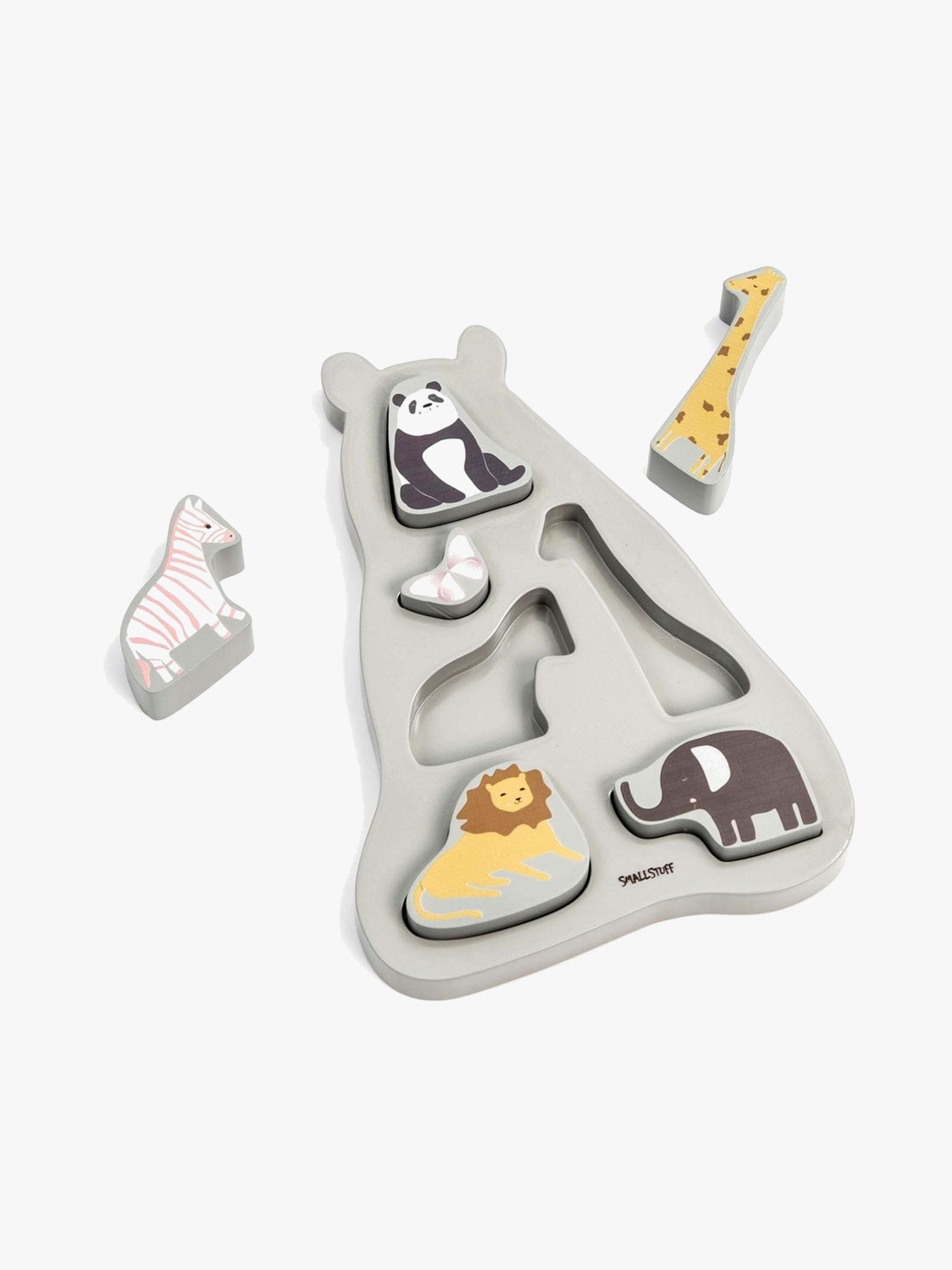 Smallstuff Träpussel är ett gulligt pussel med djur som man kan hitta på zoo. Pusslet består av 6 olika djur i lekfulla färger och kommer ge timmar av skoj till de små. Rekommenderad ålder: Från 3 år.