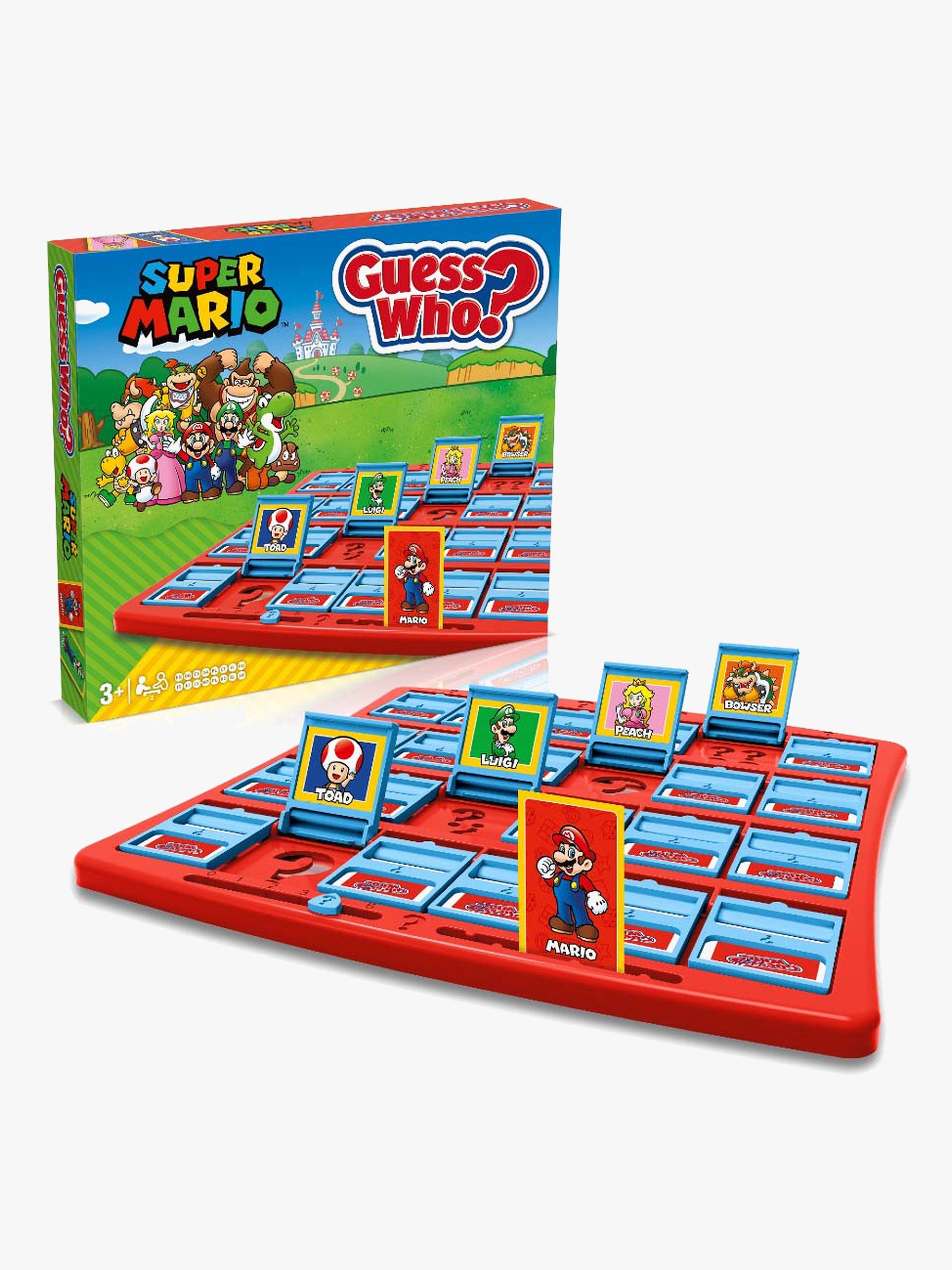 Vem Där? från Super Mario med en lekfull twist med välkända karaktärer från spelet. Turas om att ställa frågor för att eliminera misstänkta och ta reda på vilken karaktär som finns på din motståndares kort. Har de en krona på sig? Har de ett skal? Är de klädda i rött? Om de har grönt på sig och de har mustasch måste de vara Luigi! Med 24 möjliga karaktärer och en mängd olika detaljer att fokusera på, är Vem Där perfekt för att utveckla observation på ett roligt och spännande sätt. Sätt bara in porträttkorten i facken på din spelbricka och du är redo att spela. Lycka till! – CE-märkt. – Rekomm…