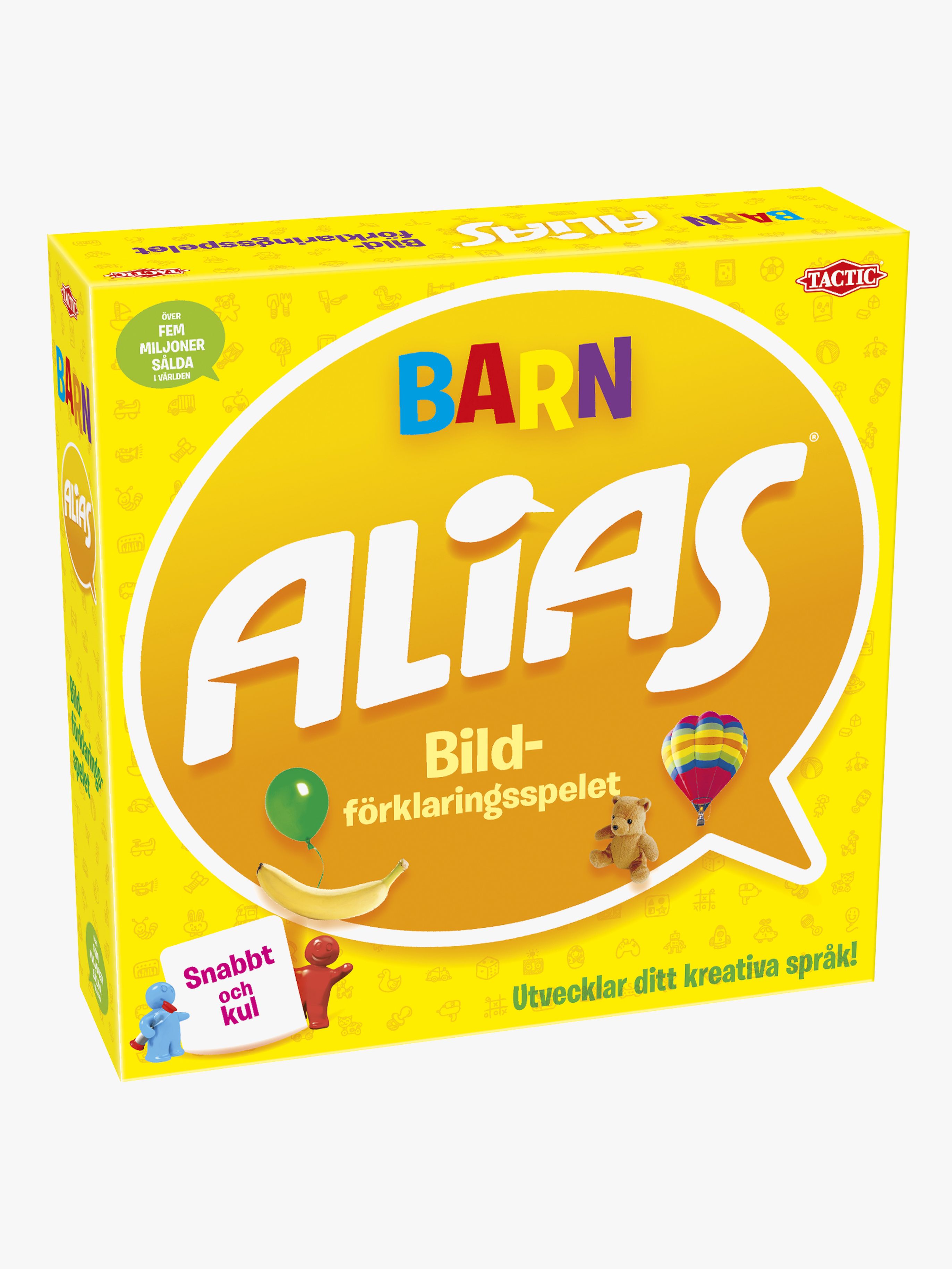 Tactic Alias Barn Spel är ett roligt spel som går ut på att beskriva och gissa bilder! Det gäller att förklara för lagkamraten vad bildkorten föreställer så att han/hon kan gissa rätt på så många som möjligt under en minut. Ju bättre dina förklaringar är desto snabbare tar man sig mot det efterlängtade målet. Spelet blir en spännande kamp mot timglaset! Rekommenderad ålder: Från 5 år. Speltid: 30 minuter eller mer. Antal spelare: 4 eller fler. Språk: Svenska.