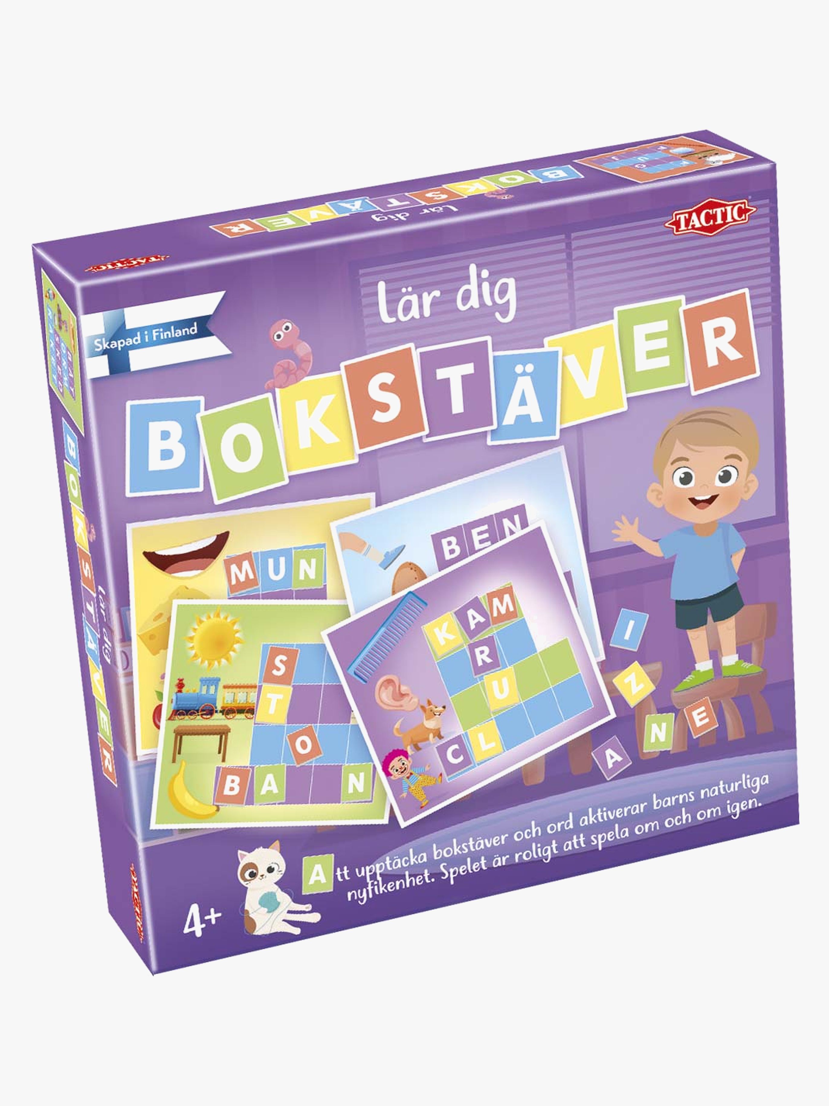 Lär dig Bokstäver är ett roligt barnspel från Tactic. Att upptäcka bokstäver och ord aktiverar barns naturliga nyfikenhet. Spelet är roligt att spela om och om igen. Låt ditt barn utveckla sina första kunskaper i läsning och stavning med dessa fyra roliga ordspel. Rekommenderad ålder: Från 4 år.