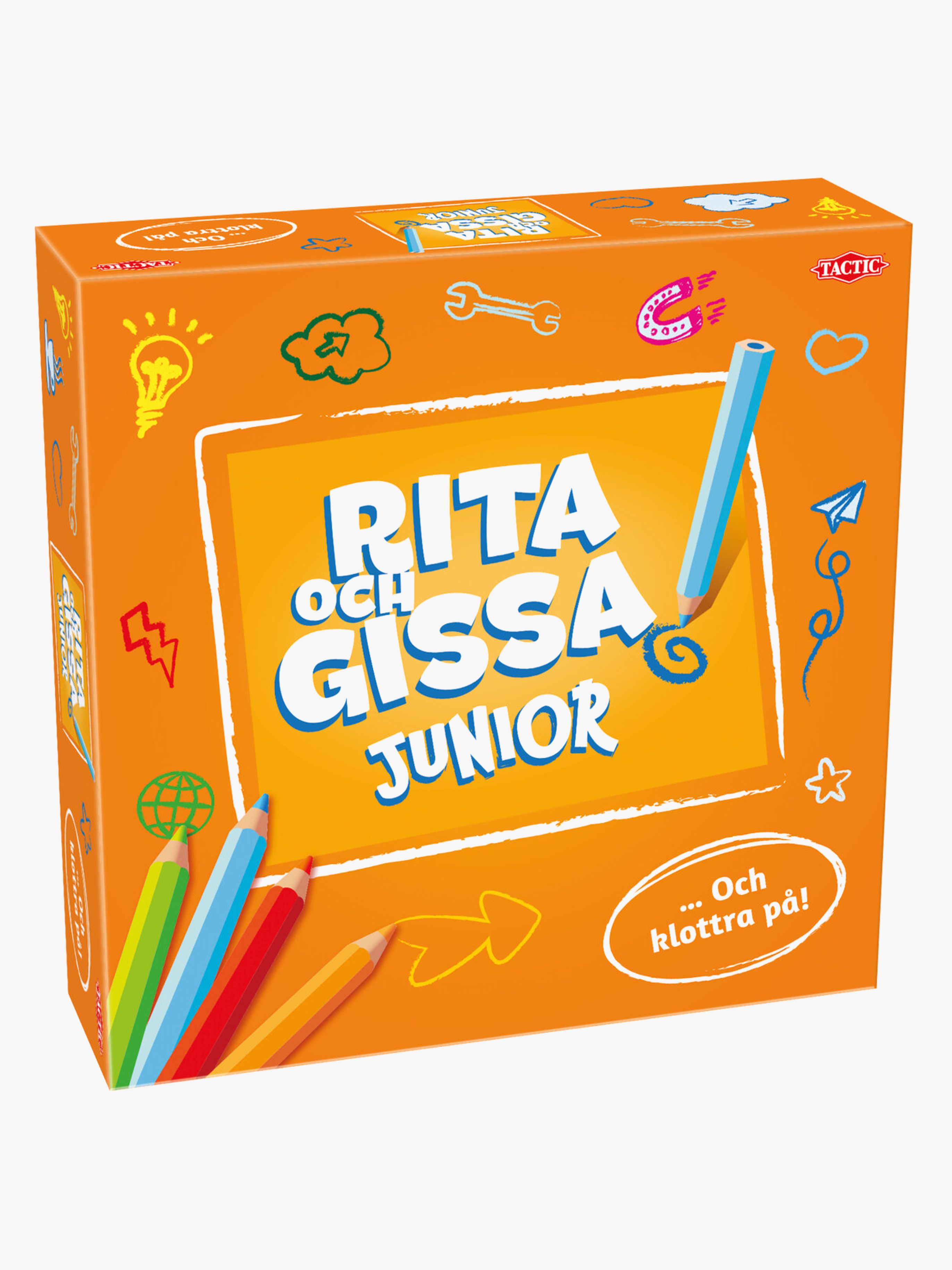 Roligt barnspel från Tactic med en unik design. Klara, färdiga, rita! Rita och Gissa Junior är en rolig barnversion av det populära familjespelet Rita och Gissa. Turas om att rita ett ord och gissa vad det föreställer. Spelet innehåller 600 ord att rita så det är fullt av utmaningar för den erfarne tecknaren samtidigt som spelet erbjuder enklare, illustrerade alternativ för de allra yngsta. - Speltid: ca 30 min. - Spelare: 3-6. - Uppmuntrar fantasi, problemlösning och logiskt tänkande. - CE-märkt. - Rekommenderad ålder: Från 5 år.