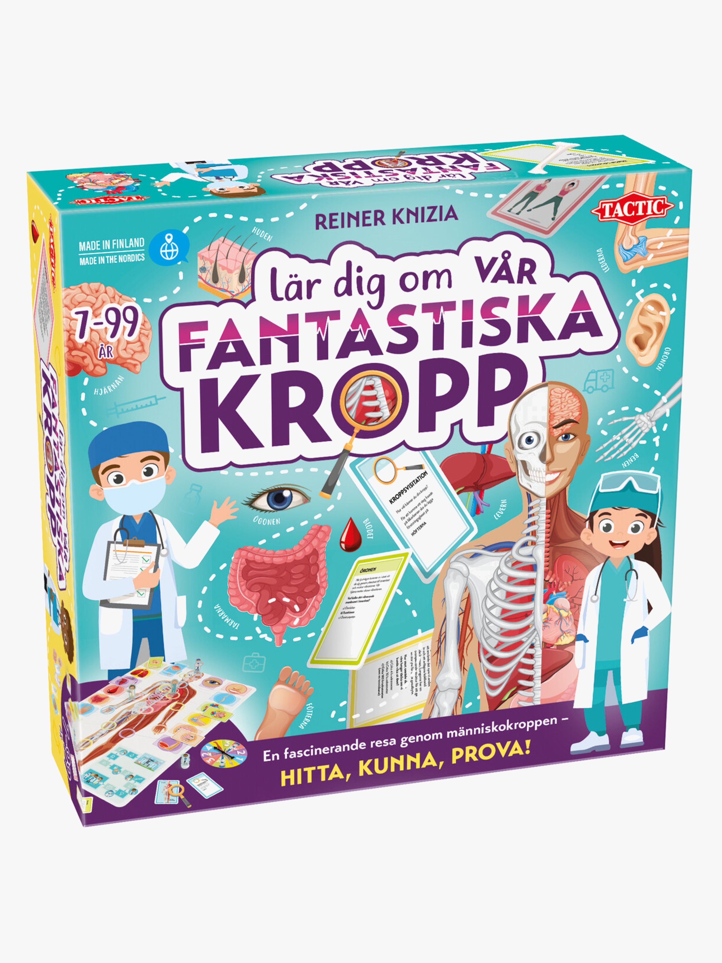 Roligt brädspel från Tactic. Följ med på en fascinerande resa genom människokroppen! Den som kommer först i mål blir läkare. Flytta din spelfigur på spelplanen, besvara roliga frågor om människokroppen och hur den fungerar och prova själv att göra olika fysiska övningar. Om du klarar uppgifterna går du vidare på din bana till att bli läkare, men de andra spelarna vill mycket gärna överträffa dig! Det tre olika uppgifter i det här spelet: hitta, kunna och prova. Börja din fascinerande resa genom människokroppen. - Speltid: ca 20 min. - För 2-5 spelare. - Tränar koncentration, logik och problem…