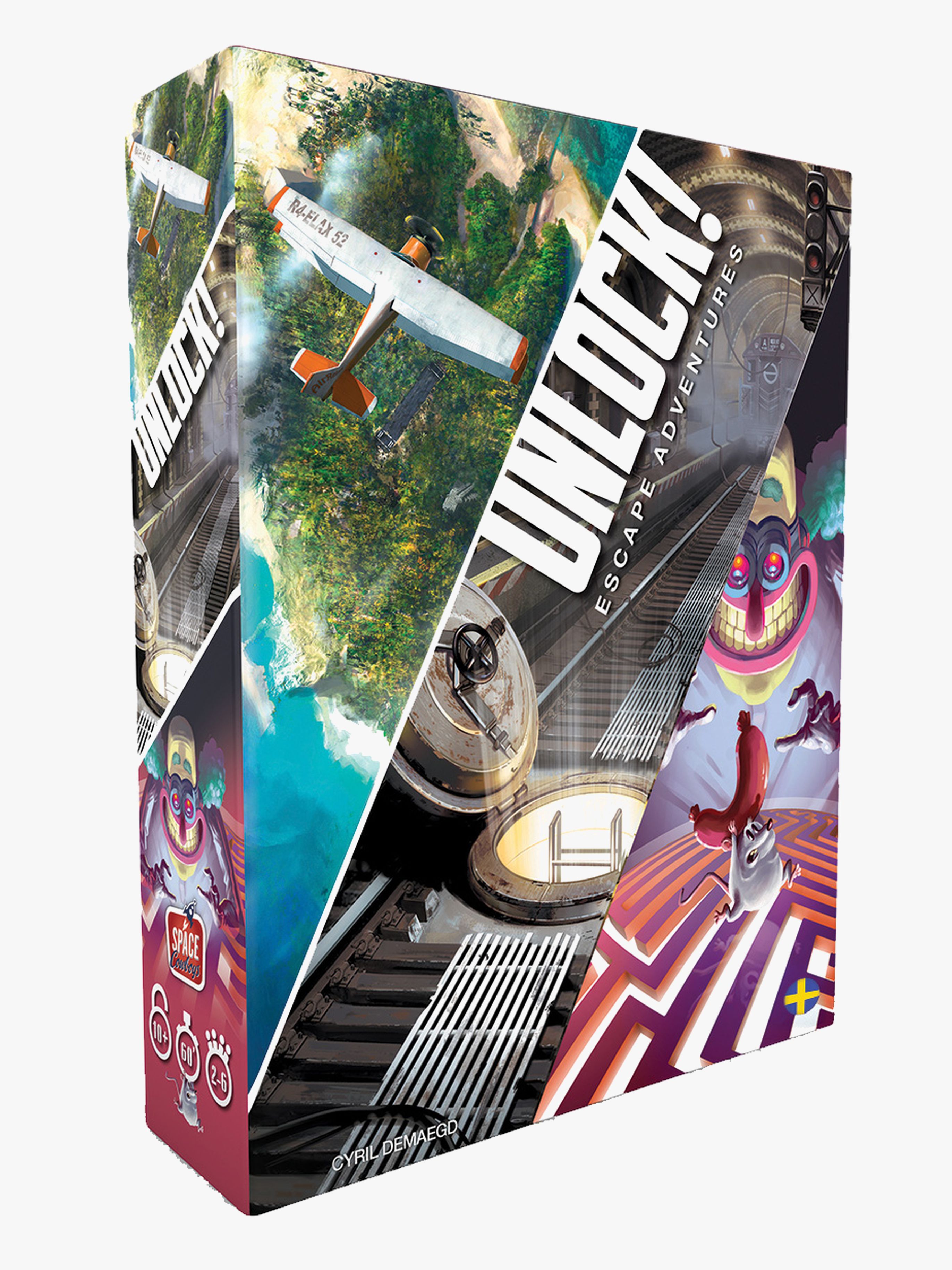 Unlock är ett appdrivet kortspel där målet är att samarbeta och kämpa tillsammans för att lösa gåtor, söka igenom rum och kombinera föremål. Allt som krävs är korten och den tillhörande appen som kan ge dig ledtrådar, kontrollera koder, visa den återstående tiden osv. – Spelet innehåller följande scenario: The Formula, Squeek & Sausage, The Island of Doctor Goorse. – Speltid: ca 60 min. – Rekommenderad ålder: Från 10 år.