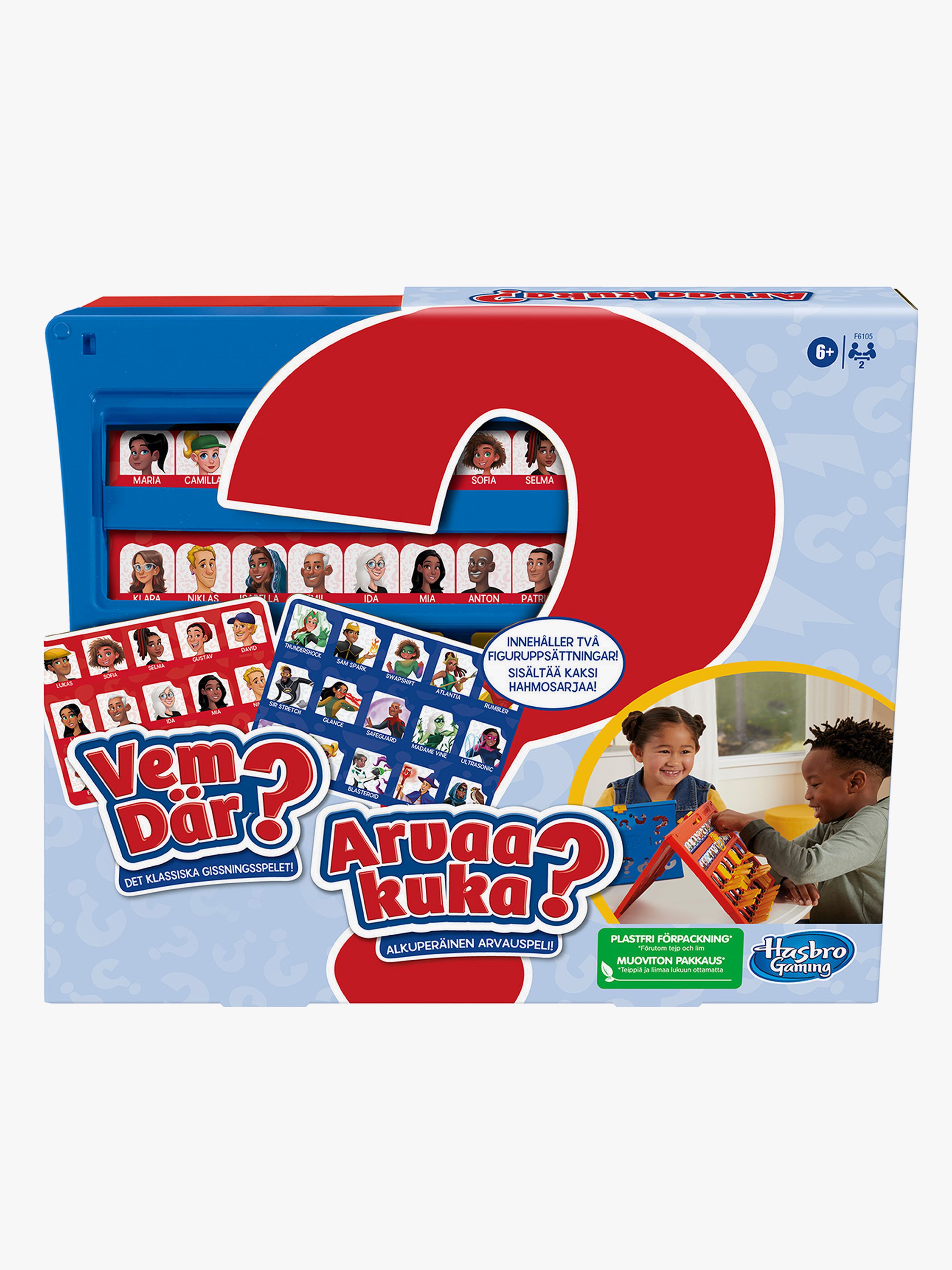 Det klassiska spelet Vem där? i ny utgåva som även innehåller superhjältekaraktärer. Varje spelare väljer ett karaktärskort och använder sedan ja eller nej-frågor för att försöka lista ut den andra spelarens mystiska person. Karaktärsbladen glider lätt in och ut ur ramen, vilket gör spelet till en lek att sätta upp. Och det bekväma hopfällbara fodralet gör det till ett utmärkt val för lek på språng. – Rekommenderad ålder: Från 6 år.