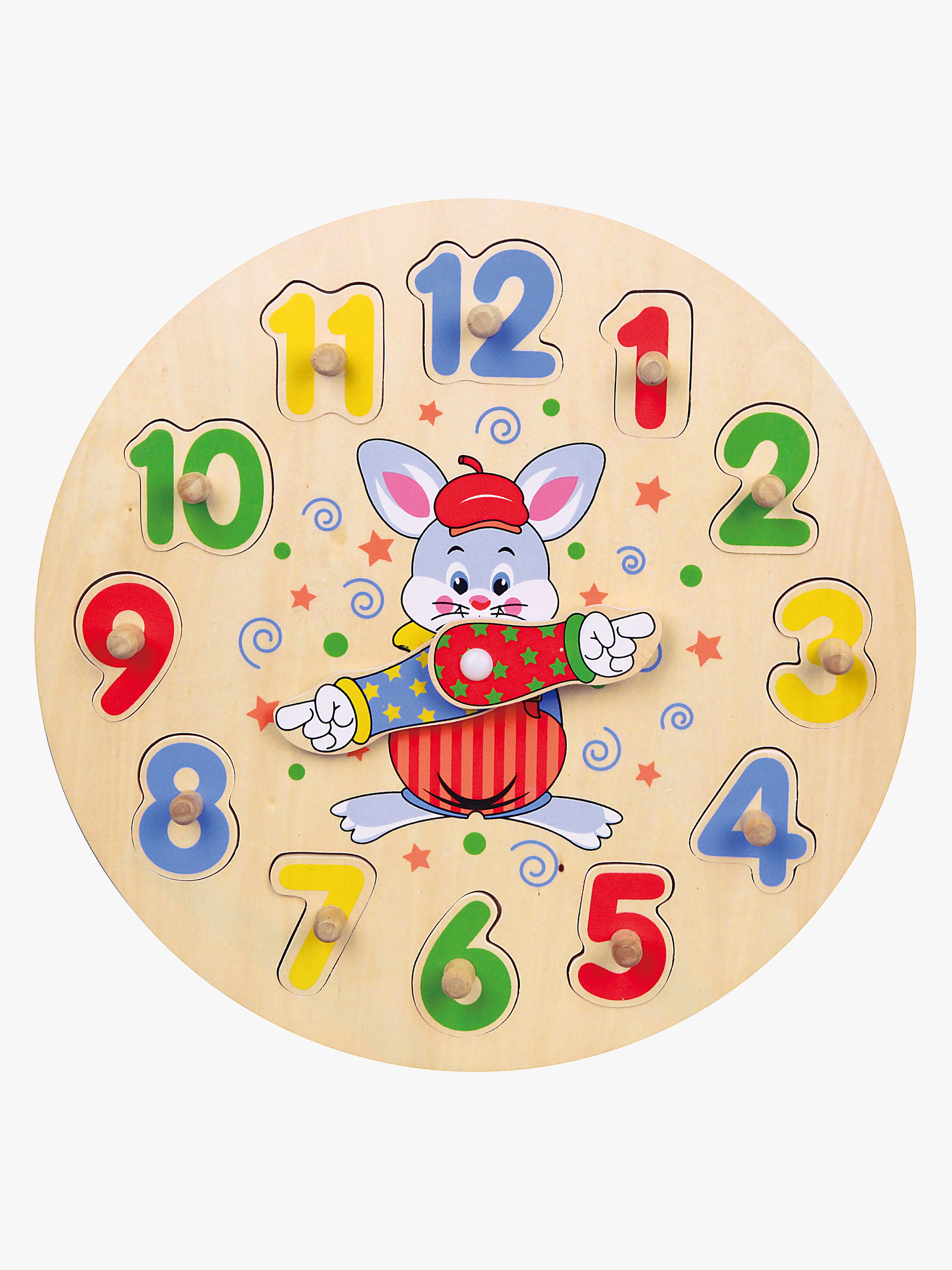 Lägg rätt siffror på rätt plats och lär dig klockan samtidigt. Med den här klockan från VIGA kan barnet lära sig hur klockans siffror ska placeras samtidigt som olika klockslag kan övas in med de två vridbara visarna. Tillverkad helt i trä. Rekommenderad ålder: från 2 år.